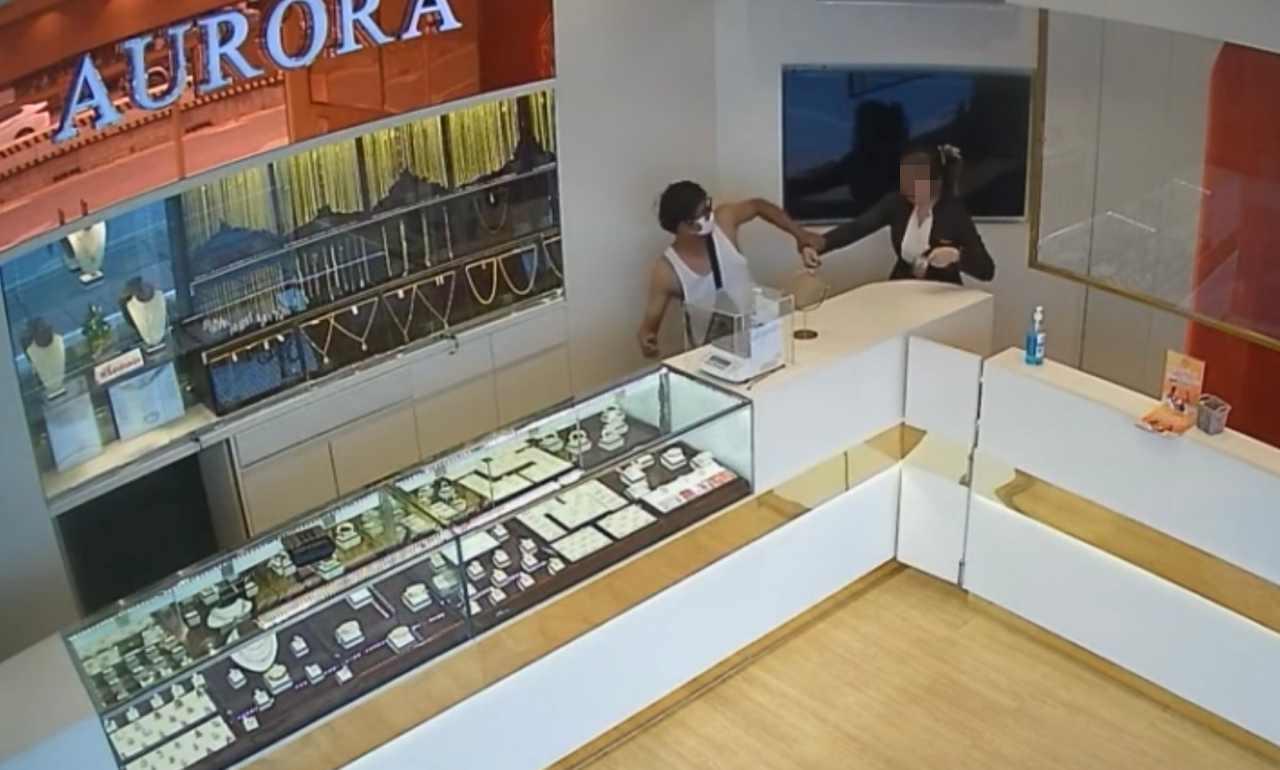 โจรหนุ่มสวมเสื้อกล้ามขี่ จยย.มาจอด บุกเดี่ยวใช้มีดจี้พนักงานร้านทองออโรร่า ที่ลำลูกกา ปทุมธานี ชิงทอง 29 เส้น ค่าเกือบ 9 แสน ตอนจะหนีพนักงานกดล็อกประตูอัตโนมัติ คนร้ายย้อนกลับมาจี้บังคับให้เปิด มีพยานใช้มือถือถ่ายใบหน้าโจรไว้ได้
