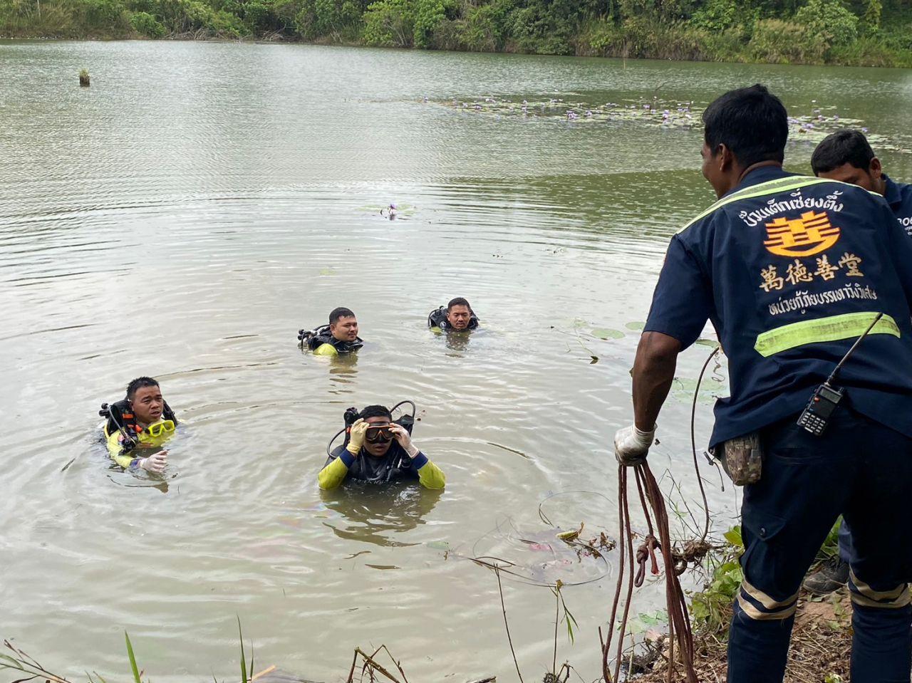 เมื่อเวลา 16.00 น. วันที่ 4 ธ.ค. 65 พล.ต.ต.วันไชย เอกพรพิชญ์ รอง ผบช.ภ.8 นำกำลัง ตร.กก.สส.ภ.8 ชุดสืบสวน ภ.จว.สุราษฎร์ธานี ตร.กองปราบฯ ตร.สภ.วังวิเศษ จ.ตรัง รุดลงพื้นที่สืบสวนขยายผลหาพยานหลักฐานเพิ่มในพื้นที่ ม.1 บ้านบางนา ต.วังมะปราง อ.วังวิเศษ จ.ตรัง หลังสืบทราบว่าแก๊งมือปืนได้แยกชิ้นส่วนอะไหล่รถมาโยนทิ้งสระน้ำเพื่ออำพราง ปิดบัง ซ่อนเร้นพยานหลักฐาน ก่อนแจ้งประสานไปยัง ตร.พิสูจน์หลักฐาน ภ.8 ฝ่ายปกครองท้องที่ มีนายวิระ ปัญติตา ผู้ใหญ่บ้าน ม.1 บ้านบางนา ต.วังมะปราง อ.วังวิเศษ จ.ตรัง หน่วยกู้ภัยบรรเทาวังวิเศษ และนักประดาน้ำจากมูลนิธิกุศลสถานตรัง (บ้วนเต็กเซี่ยงตึ๊ง) รวมเจ้าหน้าที่ฯ กว่า 30 นาย ร่วมตรวจสอบปฏิบัติการในครั้งนี้