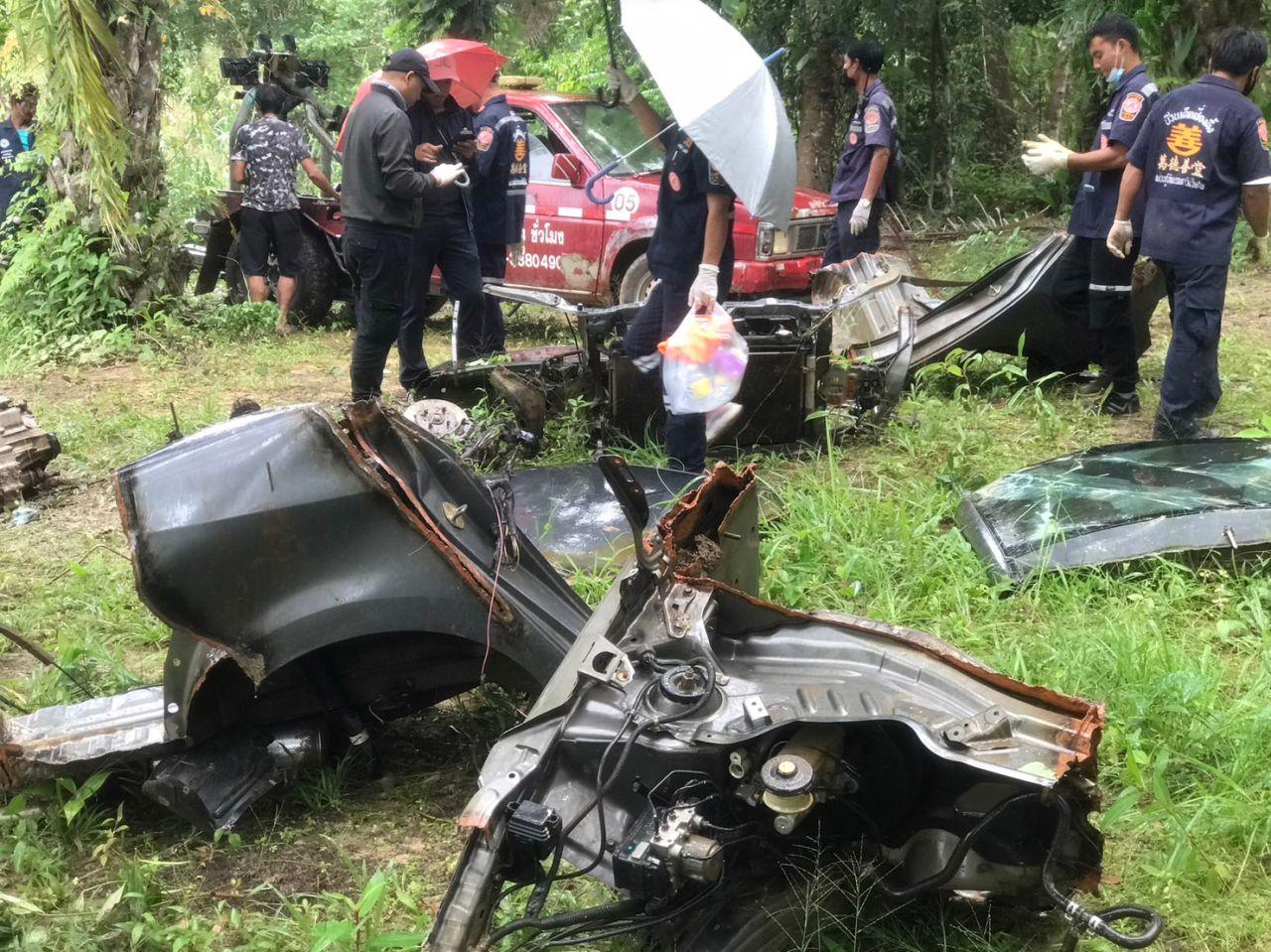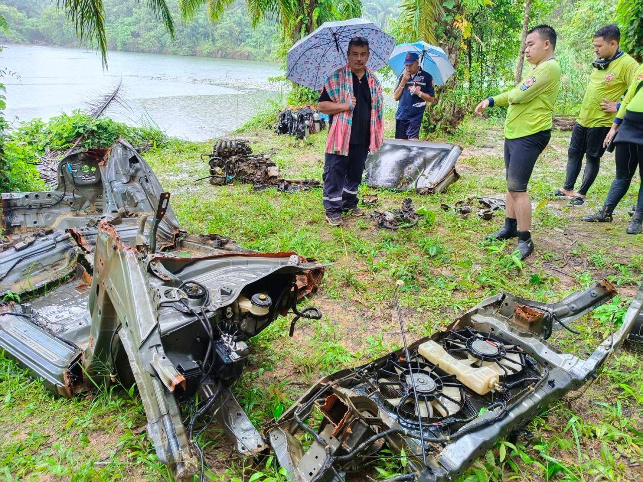 เจ้าหน้าที่ฯ ชุดปฏิบัติการต้องใช้เวลาในการระดมทีมค้นหาและเก็บกู้ของกลางนานกว่า 8 ชม. พบชิ้นส่วนอะไหล่รถยนต์เก๋ง ยี่ห้อฮอนด้า รุ่นซิตี้ สีเทาดำ ทะเบียน 7 กฎ 1674 กรุงเทพมหานคร ตามที่ระบุในสำนวนคดีกว่า 20 ชิ้น ถูกตัดแยกไม่เหลือเค้าโครงเดิม โยนทิ้งตามจุดต่างๆ บริเวณในสระน้ำขนาดใหญ่ใกล้สวนปาล์มน้ำมัน ซึ่งอยู่ห่างออกไปจากบ้านพักของ นายธรรมรินทร์ แสงหิรัญ หรือหมี อายุ 55 ปี หนึ่งในทีมผู้ร่วมวางแผนฆ่า ราวประมาณ 1 กม. ซึ่งเจ้าหน้าที่ฯ ตามเก็บกู้ชิ้นส่วนมาได้ทั้งหมดเกือบ 100% รวมทั้งตัวเครื่องยนต์และเลขตัวถังรถ ถือเป็นหลักฐานสำคัญในการประกอบสำนวนคดีที่จะออกหมายจับตัวผู้บงการ