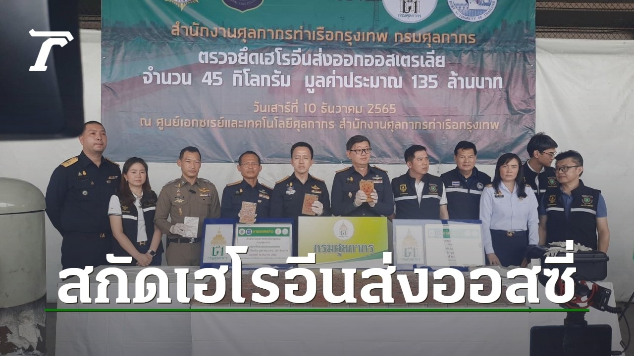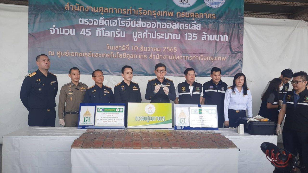 กรมศุลกากร ร่วมกับหน่วย SITF ปิดกั้นเส้นทางลักลอบลําเลียงยาเสพติด ยึดเฮโรอีน 45 กิโลกรัม มูลค่ากว่า 135 ล้านบาท ขณะเตรียมส่ง ปลายทางออสเตรเลีย โดยคาดต้นทางมาจากจุดเดียวกับครั้งก่อน