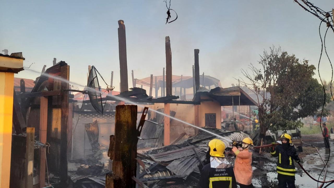 ที่เกิดเหตุพบไฟกำลังลุกไหม้ บ้านหลังหนึ่งซึ่งเป็นบ้าน 2 ชั้น ครึ่งปูนครึ่งไม้ มี นายสดชื่น คันธี อายุ 56 ปี เป็นเจ้าของ โดยเปลวเพลิงกำลังลุกไหม้ตัวบ้านทั้ง 2 ชั้นอย่างรวดเร็ว และลามไปยังบ้านใกล้เคียงอีก 2 หลัง รถดับเพลิงเร่งระดมฉีดน้ำสกัดเพื่อไม่ให้ลุกลาม โดยใช้เวลาประมาณ 2 ชั่วโมง จึงควบคุมเพลิงได้ จากการตรวจสอบพบบ้านเรือนเสียหายรวมทั้งหมด 3 หลัง
