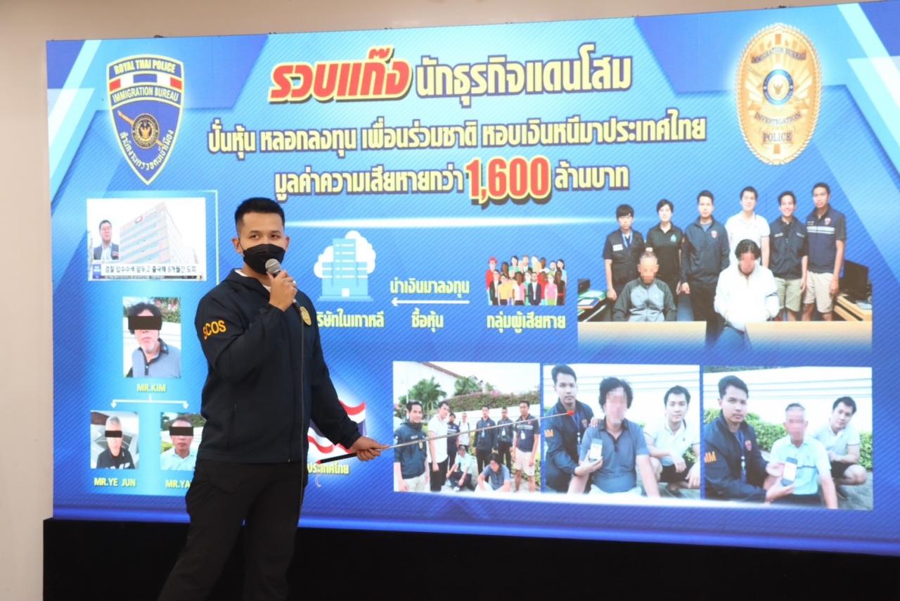 สตม. รวบแก๊งนักธุรกิจแดนโสม ปั่นหุ้น หลอกลงทุน เพื่อนร่วมชาติ มูลค่าความเสียหายกว่า 1,600 ล้านบาท หลังหลบหนีซุกประเทศไทย
