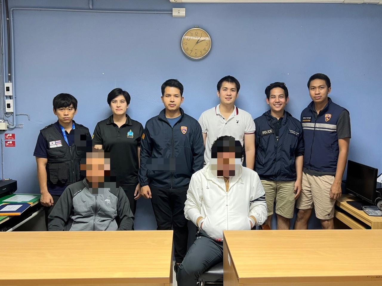 ต่อมาเมื่อวันที่ 10 ม.ค. 66 เวลาประมาณ 18.00 น. เจ้าหน้าที่ บก.สส.สตม. นำโดย พ.ต.ต.สิทธิมณ สร้อยภู่ระย้า สว.กก.4 บก.สส.สตม., ร.ต.อ.อดิศร บุญชุ่ม รอง สว.กก.ปอพ.บก.สส.สตม. พร้อมกำลัง ได้ร่วมกันจับกุม 1. MR.KIM หรือ นาย คิม อายุ 54 ปี 2. MR.YANG หรือ นาย หยาง อายุ 60 ปี นำตัวส่ง พนักงานสอบสวน กลุ่มงานสอบสวน บก.สส.สตม. ดำเนินคดี ในข้อหา "เป็นคนต่างด้าวเดินทางเข้ามาและอยู่ในราชอาณาจักรโดยการอนุญาตสิ้นสุด (overstay)"