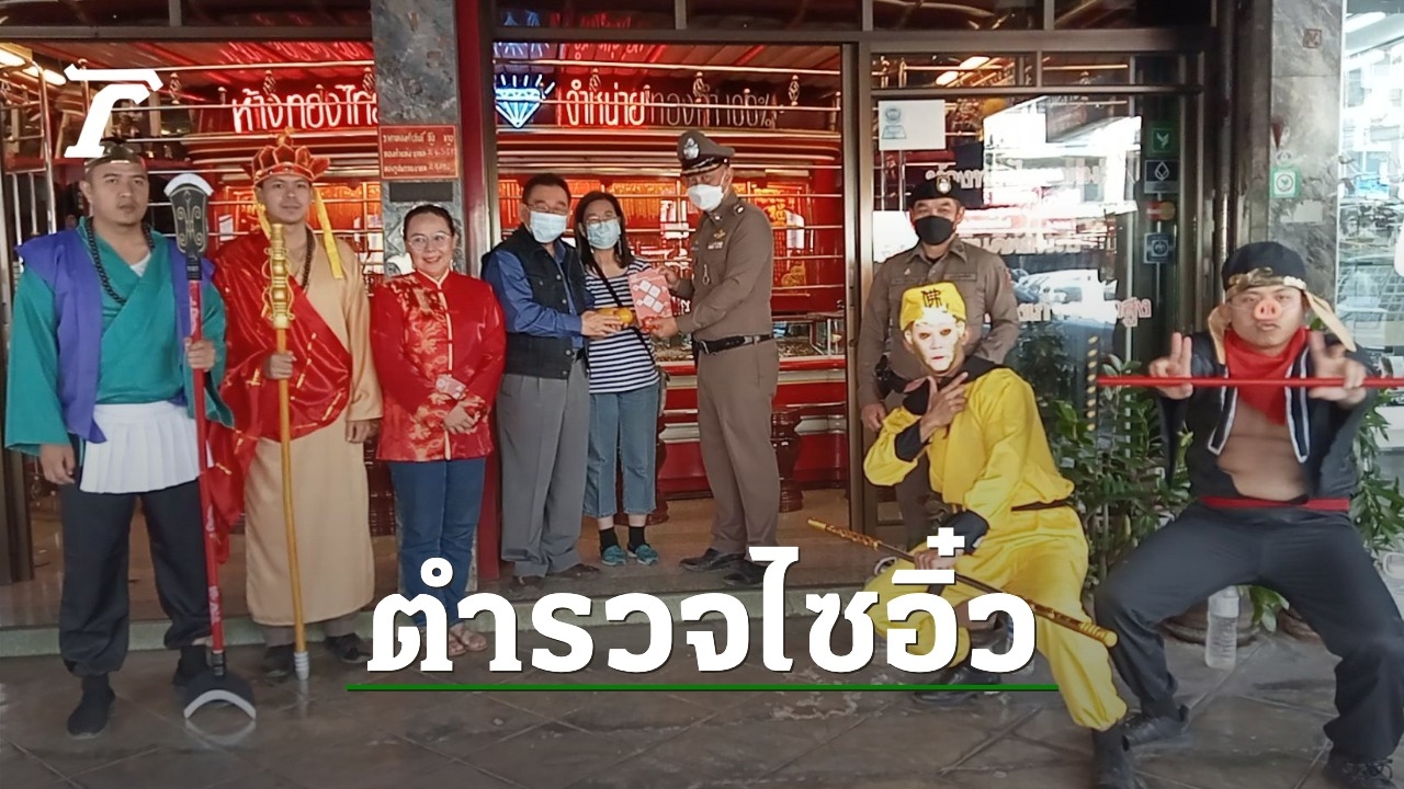 ตำรวจ สภ.เมืองอุตรดิตถ์ ถอดเครื่องแบบ ใส่ชุดธีมไซอิ๋ว มอบส้มมงคล และแจกแผ่นพับรณรงค์ พร้อมแนะวิธีป้องกันอัคคีภัย สร้างสีสันวันตรุษจีน 2566