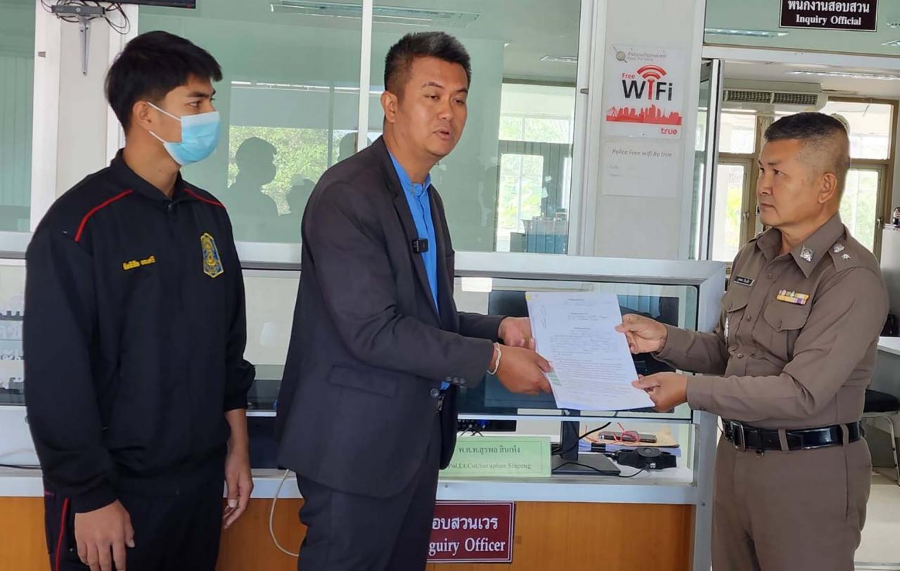 ต่อมาเวลา 11.00 น. วันเดียวกัน นายธรรมราช สาระปัญญา ทนายความของครูบาไก่ ได้นำเอกสาร เป็นหลักฐานเข้าพบ พ.ต.ท.สุรพล สินเพ็ง สว.(สอบสวน) สภ.มัญจาคีรี เพื่อแจ้งความร้องทุกข์กล่าวโทษคนร้ายที่สร้างความเสื่อมเสียให้ครูบาไก่