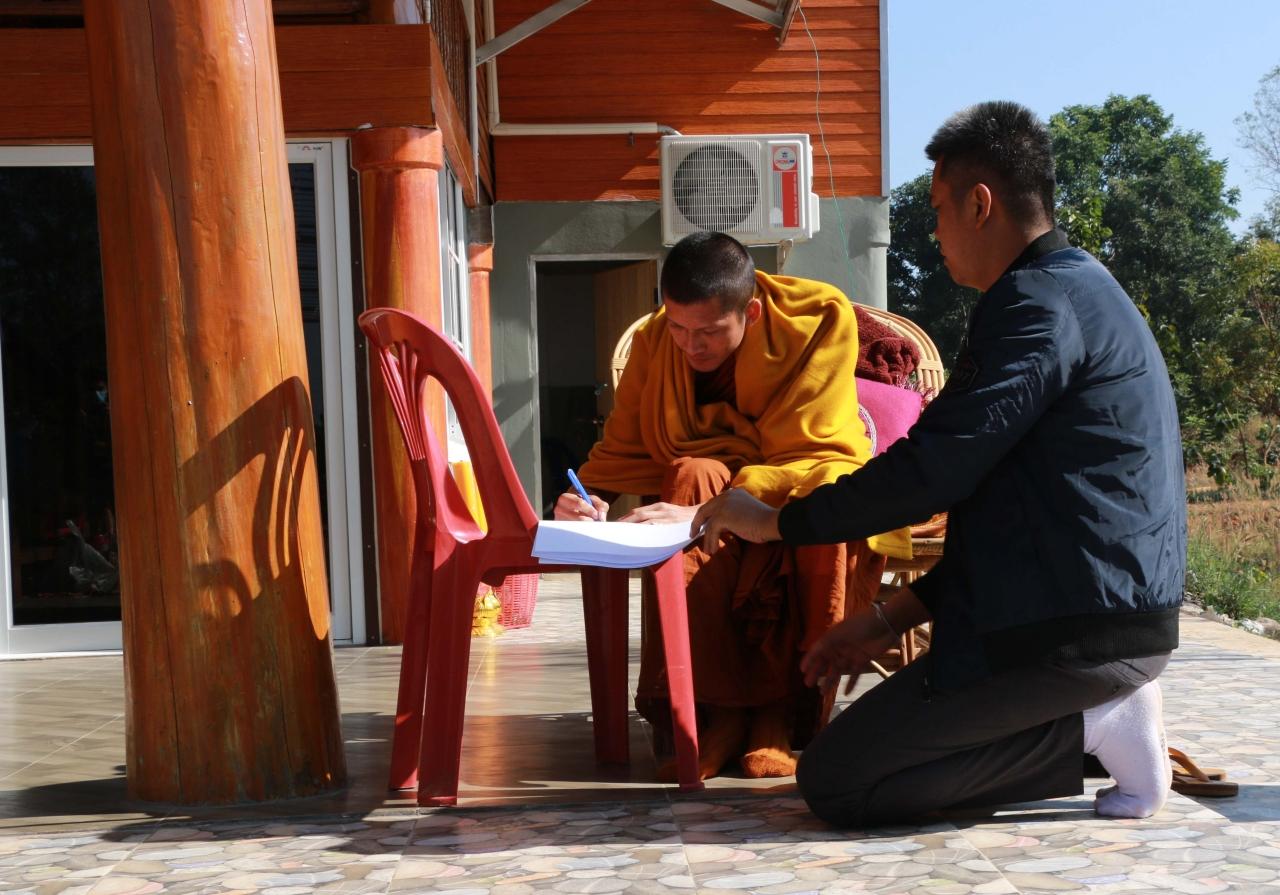ภายหลังครูบาไก่ฉันภัตตาหารเช้าเสร็จก็ได้กลับมายังกุฏิ เพื่อเซ็นเอกสารหลักฐานที่นายธรรมราช สาระปัญญา ทนายความของครูบาไก่ เพื่อนำเป็นหลักฐานเข้าแจ้งความกับตำรวจ สภ.มัญจาคีรี