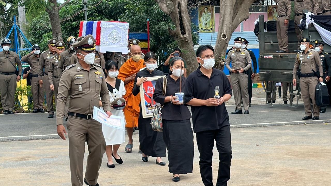 ยังล่าตัวไม่ได้ คนร้ายยิงตำรวจสายตรวจปากช่องเสียชีวิต ขณะออกตรวจกลางคืนคนเดียว รองต่อเป็นประธานรดน้ำศพ มอบเงินช่วยของ ตร. 3 แสน ผบช.ภ.3 มอบอีก 1 แสน ก่อนร่วมแบกโลงศพ ชื่นชม "ใจน้องมันได้"