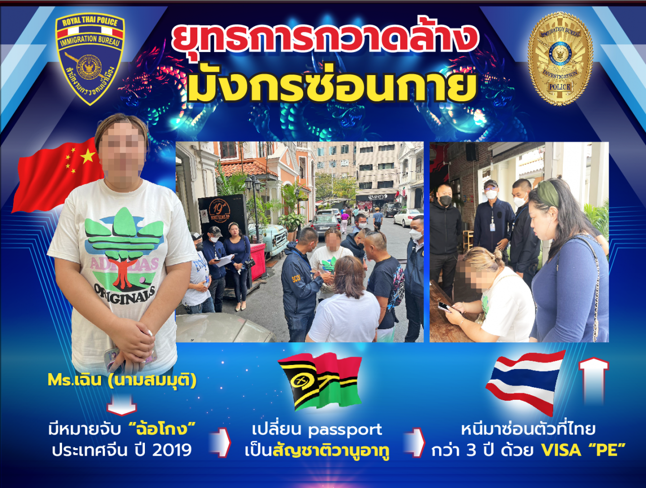 โดยกองบังคับการสืบสวนคนต่างด้าว ที่มีหนังสือเดินทาง 2 สัญชาติขึ้นไป ที่เข้ามาพำนักในประเทศไทย พบ 117 ราย ซึ่งจากการตรวจสอบประวัติของคนต่างด้าวทั้ง 117 ราย พบว่าเป็นบุคคลที่รัฐบาลต่างประเทศมีการออกหมายจับไว้ที่ประเทศต้นทางจำนวน 17 ราย โดยส่วนใหญ่เป็นคดีเกี่ยวกับแชร์ลูกโซ่และฉ้อโกง ซึ่งระหว่างการติดตามตัวคนต่างด้าวบางส่วนได้เดินทางออกนอกราชอาณาจักรไปแล้ว คงเหลืออยู่ในราชอาณาจักรไทยเพียง 3 ราย จึงได้ทำการอนุมัติเพิกถอนการอยู่ในราชอาณาจักรไทยของคนต่างด้าวทั้ง 3 ราย ก่อนจะติดตามตัวผู้ต้องหาทั้ง 3 ราย เพื่อผลักดันกลับประเทศ