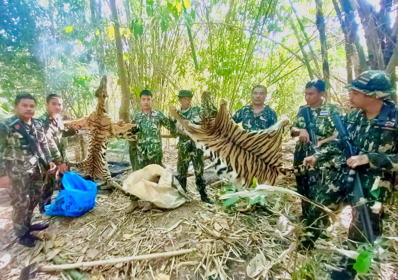 เมื่อวันที่ 6 มี.ค. 66 ผู้สื่อข่าวรายงานความคืบหน้า คดีเจ้าหน้าที่อุทยานแห่งชาติทองผาภูมิ จ.กาญจนบุรี นำโดยนายเจริญ ใจชน หัวหน้าอุทยานแห่งชาติทองผาภูมิ จับกุมตัวนายศุภชัย เจริญทรัพย์ นายจอแห่ง พนารักษ์ นายกูกือ ยินดี นายรัชชานนท์ เจริญทรัพย์ และนายโชเอ ไม่มีนามสกุล 5 นายพรานชาวหมู่ 4 ต.ปิล๊อก อ.ทองผาภูมิ ผู้ต้องหาก่อเหตุนำซากวัวมาเป็นเหยื่อล่อเสือโคร่งสองแม่ลูกออกจากป่าห้วยปิล๊อก ในเขตอุทยานแห่งชาติทองผาภูมิ และป่าสงวนแห่งชาติเขาช้างเผือก แล้วใช้อาวุธปืนยิงจนเสียชีวิต จากนั้นนำไปถลกหนังและแล่เอาเนื้อเพื่อนำไปเป็นอาหาร เหตุการณ์เกิดขึ้นระหว่างวันที่ 8-11 มกราคม 2565 ต่อมาวันที่ 15 ม.ค. 2565 ศาลจังหวัดทองผาภูมิได้อนุญาตให้ผู้ต้องหาทั้ง 5 ราย ประกันตัวออกไปเพื่อต่อสู้คดีในชั้นศาลในวงเงินคนละ 100,000 บาท ตามที่ได้เสนอข่าวไปแล้วนั้น