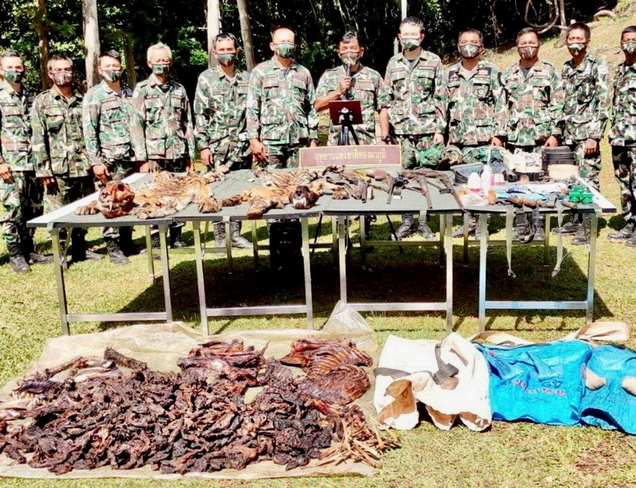 ศาลจังหวัดทองผาภูมิ พิพากษาจำคุก แก๊ง 5 นายพรานฆ่าชำแหละแล่เนื้อ 2 เสือโคร่งแม่ลูกใน อช.ทองผาภูมิ 8 ปี 18 เดือน จำเลยรับสารภาพลดกึ่งหนึ่งเหลือ 3 ปี 21 เดือน พร้อมให้ชดใช้เงิน 750,000 บาท