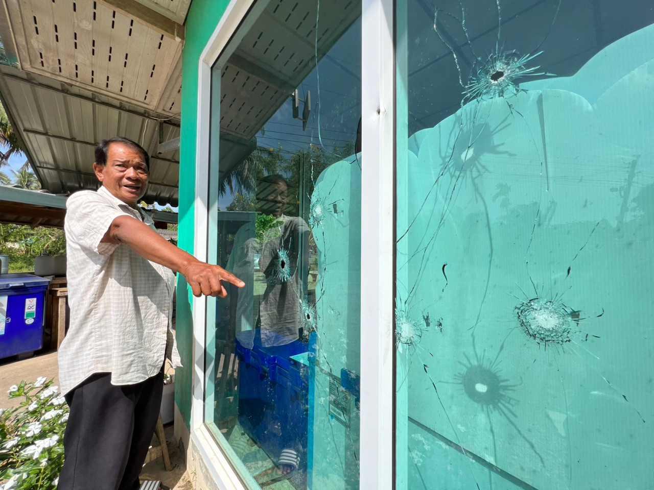 ต่อมาเวลา 10.30 น. ผู้สื่อข่าวได้ลงพื้นที่บ้านเกิดเหตุ เป็นบ้านปูนชั้นเดียว เปิดเป็นร้านค้าขายของชำ พบกับนายสงบ ยงประเดิม หรือ ลุงอ๊อฟ อายุ 67 ปี เจ้าของบ้าน นำชี้จุดที่คมกระสุนเจาะเข้าฝาผนังปูน และเจาะทะลุเข้ากระจกบ้าน คมกระสุนยังเจาะทะลุเข้าไปถึงตู้เย็น และสิ่งของต่างๆ ที่ตั้งวางขาย ตรวจสอบพบรูกระสุนทั้งหมด 36 รู ซึ่งกระสุนถูกยิงเข้าในระดับหน้าอกและศีรษะทั้งสิ้น