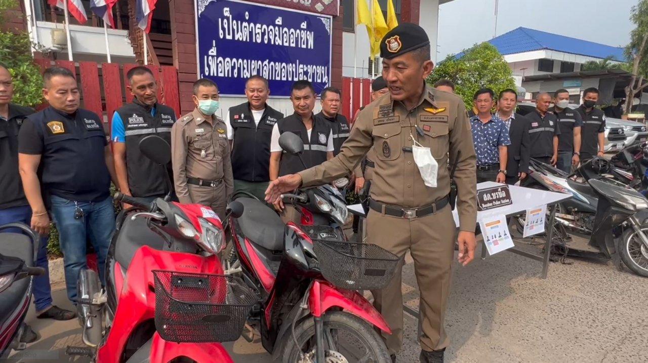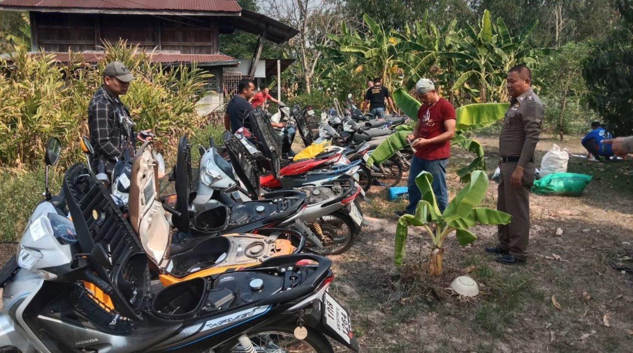 ตำรวจ สภ.บรบือ รวบโจรลัก จยย.ตระเวนก่อเหตุ 4 อำเภอ ก่อนขยายผลรวบรายใหญ่ พบโกดังอยู่ที่ อ.พยัคฆภูมิพิสัย เจอของกลางรวม 47 คัน ชี้เป็นขบวนการลักรถมาชำแหละ ขายอะไหล่และดัดแปลงทำรถ จยย.พ่วงข้าง