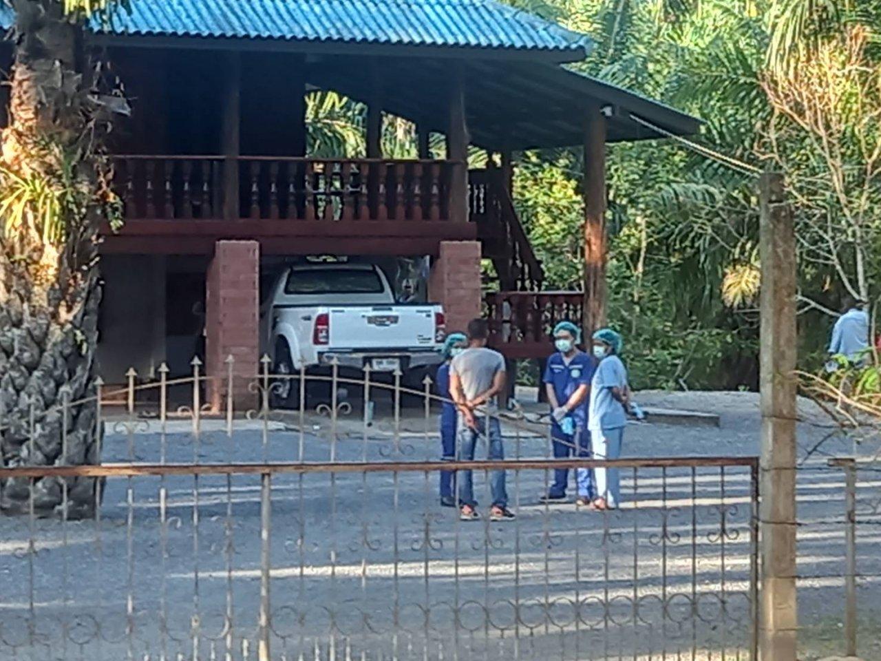 จากการตรวจสอบภายในรั้วบ้านด้านขวา เป็นที่ตั้งศาลาหน้าบ้านมีโอ่งน้ำขนาดใหญ่ด้านข้าง พบศพนางนิลทิพย์ ปาลคะเชนทร์ หรือ แตง อายุ 49 ปี อยู่ ต.กะเปา อ.คีรีรัฐนิคม ถูกยิงด้วยกระสุนปืนไม่ทราบขนาดที่บริเวณลำตัวหลายนัด ส่วนภายในบ้านพบถูกกราดยิงถึง 3 ศพลักษณะวิ่งหนีตาย ประกอบด้วยนายพรศักดิ์ ชูเพ็ชร หรือผู้ใหญ่กรอก อายุ 56 ปี อดีตผู้ใหญ่บ้านหมู่ที่ 13 ต.ท่าขนอน อ.คีรีรัฐนิคม ถูกยิงเสียชีวิตในซอกราวแขวนเสื้อผ้าที่ชั้นล่าง และชายไทยไม่ทราบชื่อ และนามสกุล ถูกยิงเสียชีวิตในห้องครัวด้านหลัง ส่วนที่ห้องนอนชั้น 2 พบศพนายธรรมรงค์ นิลนิยม หรือผู้ใหญ่รงค์ อายุ 60 ปี เจ้าของบ้านเป็นอดีตผู้ใหญ่บ้าน หมู่ที่ 1 ต.บางงอน อ.พุนพิน ถูกยิงเสียชีวิตบนที่นอน