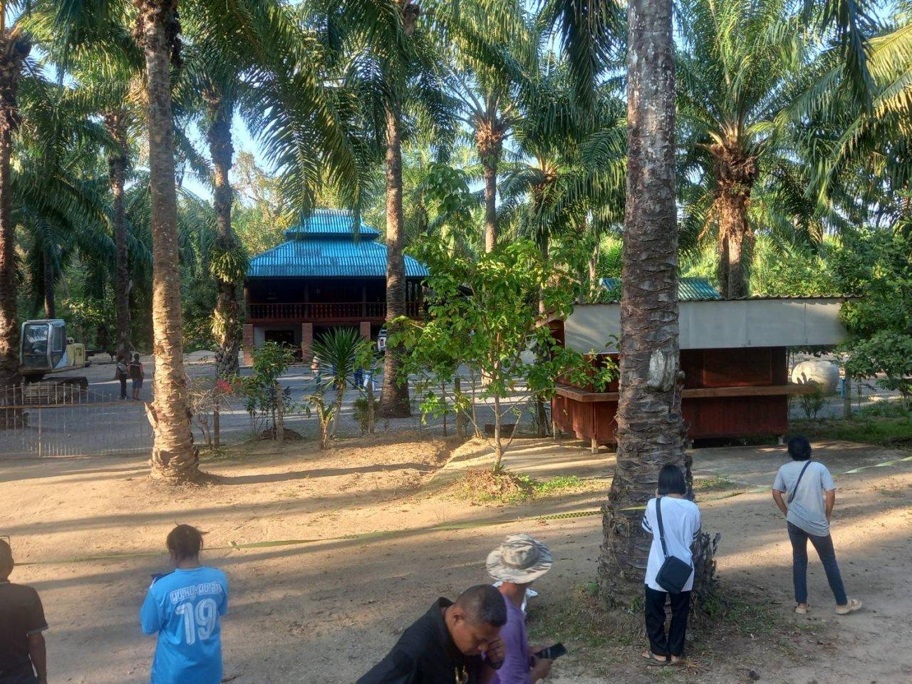 ที่เหตุเกิดเป็นบ้านพักขนาดใหญ่ 2 ชั้น อยู่ในสวนปาล์มน้ำมัน ที่บริเวณหน้าบ้านทั้งในรั้วและนอกรั้วพบปลอกกระสุนปืนอาวุธสงครามขนาด 5.56 มม. (กระสุนปืนเอ็ม 16) กระจายเกลื่อนนับ 100 ปลอก เจ้าหน้าที่ได้กั้นที่เกิดเหตุไม่ให้บุคคลภายนอกเข้าไป