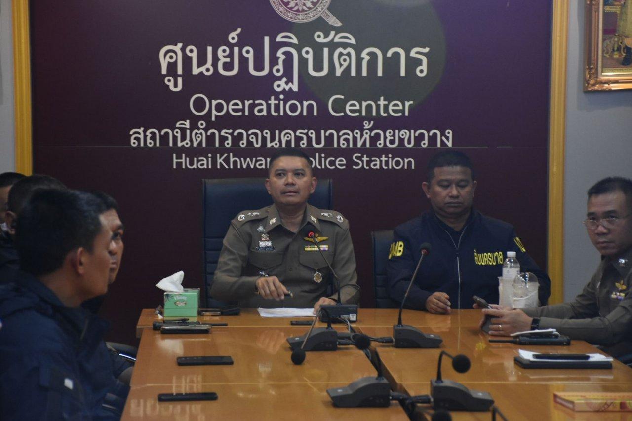 ที่ สน.ห้วยขวาง เมื่อเวลา 14.00 น. วันที่ 22 เม.ย.2566 พล.ต.ต.นพศิลป์ พูลสวัสดิ์ รอง ผบช.น. พล.ต.ต.ธีรเดช ธรรมสุธีร์ ผบก.สส.บช.น. ร่วมกันแถลงถึงกรณีมีเหตุชาวจีนร่วมกันอุ้มชิงทรัพย์หญิงชาวจีนเหตุเกิดในท้องที่ สน.ห้วยขวาง โดยพล.ต.ต.นพศิลป์ เผยว่า เมื่อวันที่ 19 เม.ย. 66 ที่ผ่านมา ช่วงเวลาประมาณ 17.00 น. ได้รับแจ้งจาก พ.ต.อ.สุกฤต มังคละสวัสดิ์ ผกก.สน.ห้วยขวาง ว่า มีหญิงชาวจีนถูกจับตัวเพื่อเรียกเงิน คนร้ายหลบหนีไป โดยผู้เสียหายปลอดภัยก่อนเข้าแจ้งความที่ สน.ห้วยขวาง โดยชุดสืบสวนของ พล.ต.ต.ธีรเดช และ กก.สส.บก.น 1 ได้ทำการตรวจสอบที่เกิดเหตุ พบว่าจุดเกิดเหตุเป็นคอนโดแห่งหนึ่งย่านถนนพระราม 9 ชั้น 35 โดย น.ส.หลิน (นามสมมติ) อายุ 25 ปี ผู้เสียหายชาวจีน ได้นำเจ้าหน้าที่เข้าไปตรวจสอบห้องดังกล่าว พบว่ามีร่องรอยการต่อสู้ ผู้เสียหายได้ชี้ยืนยันว่า คนร้ายมีมีดเล่มหนึ่งใช้ขู่ผู้เสียหาย หลังจากนั้นได้มีการมัดตัวไว้