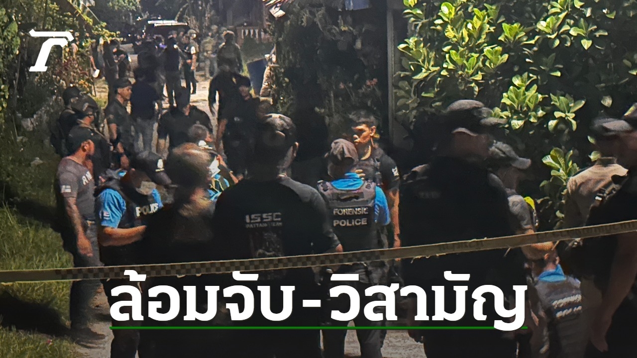 จนกระทั่งมีหญิงสาวเดินออกมาจากบ้าน และบอกว่าเป็นภรรยาของบุคคลเป้าหมาย เจ้าหน้าที่จึงให้ภรรยาเจรจาแต่ก็ไม่เป็นผล กระทั่งเวลา 17.30 น. คนร้ายที่หลบซ่อนตัวอยู่ภายในบ้าน ได้ใช้อาวุธปืนยิงใส่เจ้าหน้าที่จากบริเวณหลังบ้าน เพื่อหวังเปิดทางหลบหนี แต่ก็ไม่สามารถหนีออกมาได้ เจ้าหน้าที่จึงประสานไปยังผู้ใหญ่บ้านให้ช่วยเจรจาอีกครั้ง แต่คนร้ายไม่ฟังเปิดฉากใช้อาวุธปืนยิงใส่เจ้าหน้าที่อีกครั้ง จนทุกคนต้องหลบกระสุน การเจรจายังคงดำเนินต่อไป แต่คนร้ายยังไม่มีทีท่าว่าจะยอมมอบตัว