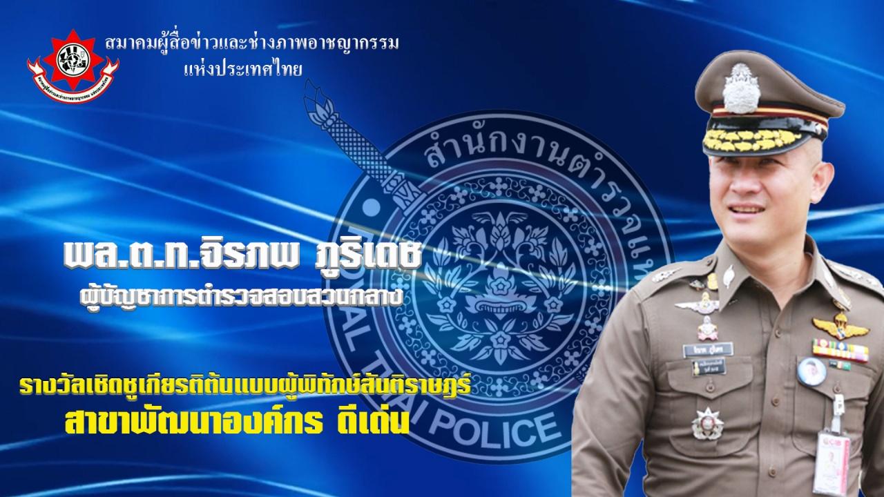 พล.ต.ท.จิรภพ ภูริเดช ผบช.ก. “สาขานักพัฒนาองศ์กรดีเด่น” พล.ต.ท.จิรภพ ถือเป็นนายพลหนุ่มไฟแรงที่ได้รับความไว้วางใจจากผู้บังคับบัญชาให้ดูแลหน่วยงานสำคัญ ตลอดระยะเวลาที่ดำรงตำแหน่ง ผู้บัญชาการสอบสวนกลาง ได้พัฒนาหน่วยงานทุกด้านให้มุ่งสู่มาตรฐานสากล ทั้งการพัฒนาบุคลากร การพัฒนาเทคโนโลยี การพัฒนาสถานที่ทำงาน การพัฒนาสวัสดิการให้กับเจ้าหน้าที่ตำรวจและครอบครัวผ่านการจัดโครงการต่างๆ ภายใต้แนวคิด “มืออาชีพ เป็นกลาง เคียงข้างประชาชน”