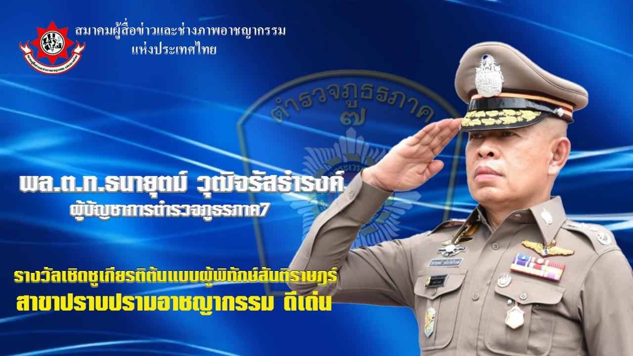 พล.ต.ท.ธนายุตม์ วุฒิจรัสธำรงค์ ผบช.ภ.7 “สาขาปราบปรามอาชญากรรมดีเด่น” ถือว่าเป็นนายตำรวจฝีมือดีทำงานเชิงรุกจนมีผลงานเป็นที่ประจักษ์ได้รับความไว้วางใจดูแลพื้นที่ภาคตะวันตก ตลอดระยะเวลาที่คุมพื้นที่สามารถจับกุมคดียาเสพติด ยาบ้า ยาไอซ์ ยาเค เฮโรอีน ตลอดจนคดีอาชญากรรมต่างๆ ได้เป็นจำนวนมาก จนผลงานโดดเด่นในสายตาของประชาชนและสื่อมวลชน