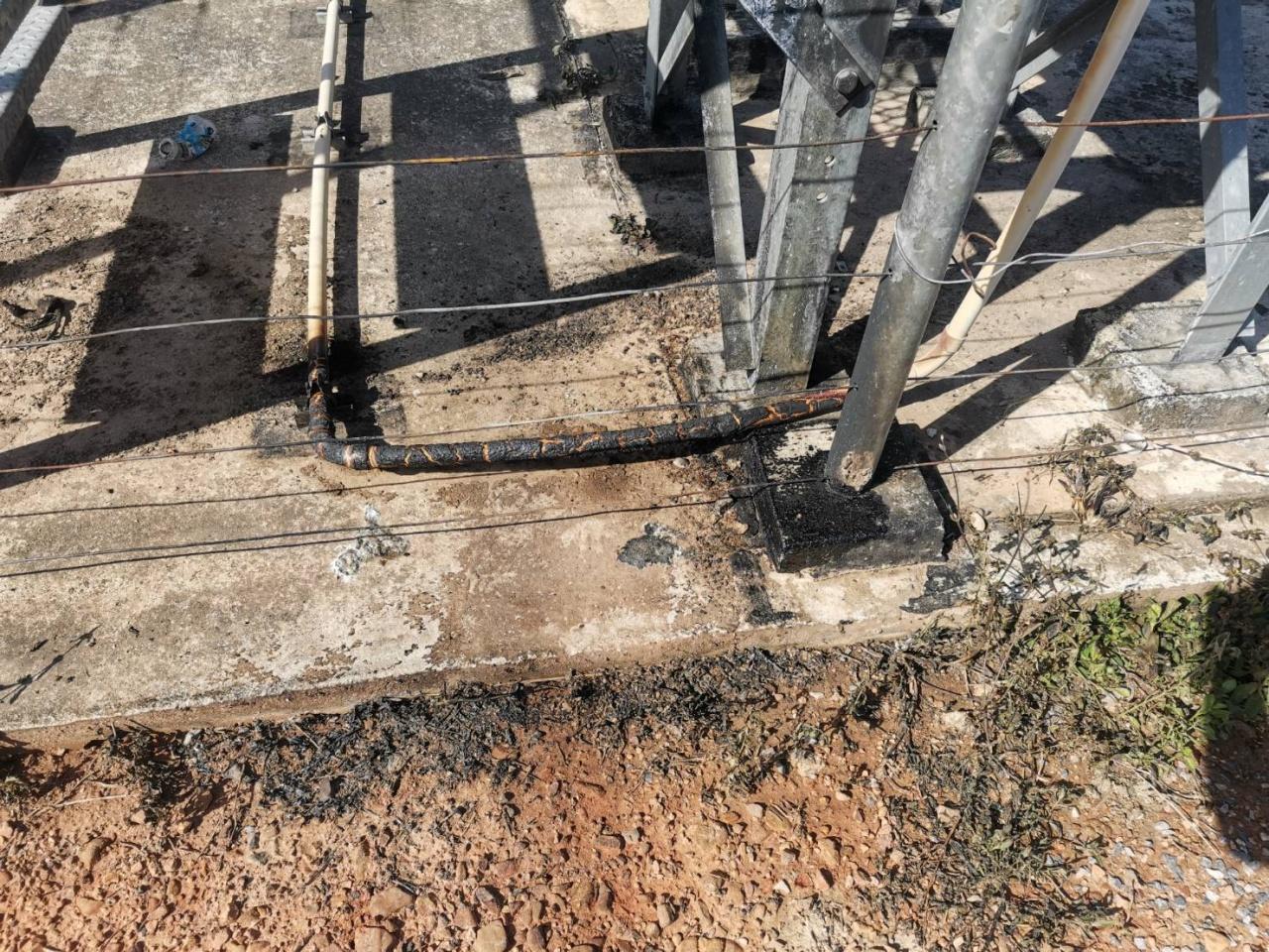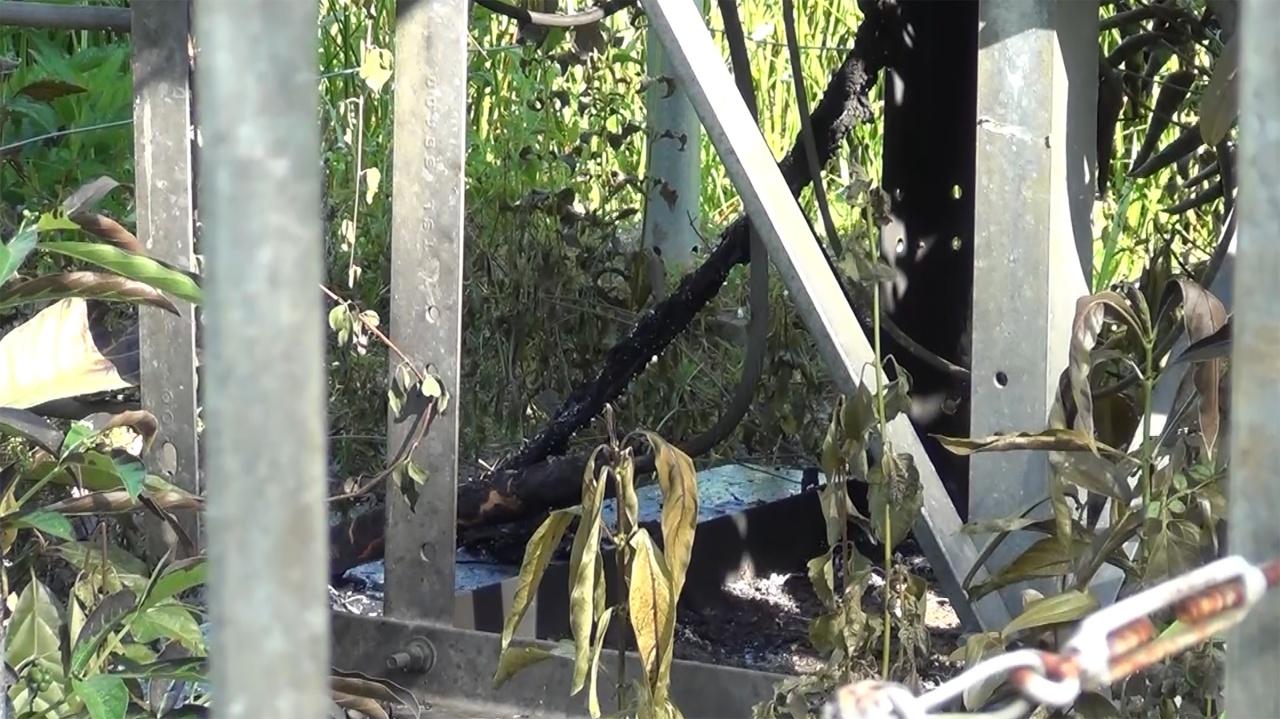 จุดที่ 1 เผาเสาสัญญาณโทรศัพท์ (cat) บ.บือเจาะ ม.1 ต.บางปู