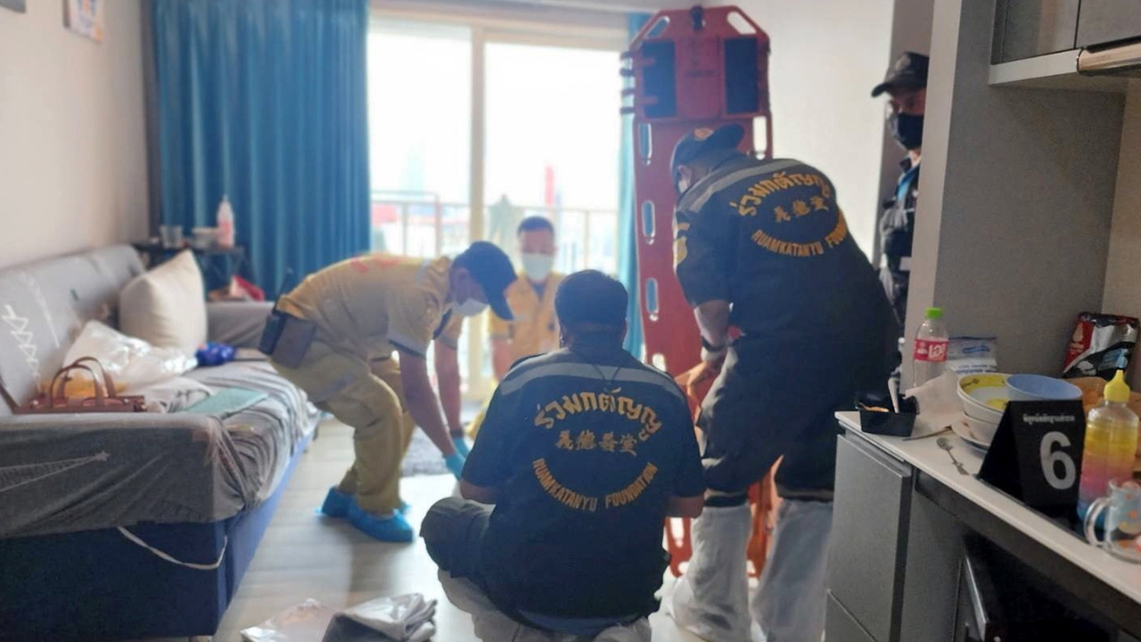 เจ้าหน้าที่มูลนิธิร่วมกตัญญูตรวจสอบสภาพศพ น.ส.อโรนา เซฟเชนโก ชาวยูเครน ถูกนาย ลาโกดา ฟิลิปโพว ชาวโปแลนด์ ฆ่าแทงอก แล้วใช้เลื่อยหันแยกชิ้นส่วนศพ เหตุเกิดในคอนโดฯหรู ย่านถนนเจริญราษฎร์ ต่อมาผู้ก่อเหตุรายนี้ถูกจับกุมขณะเตรียมข้ามไปฝั่งเขมร.