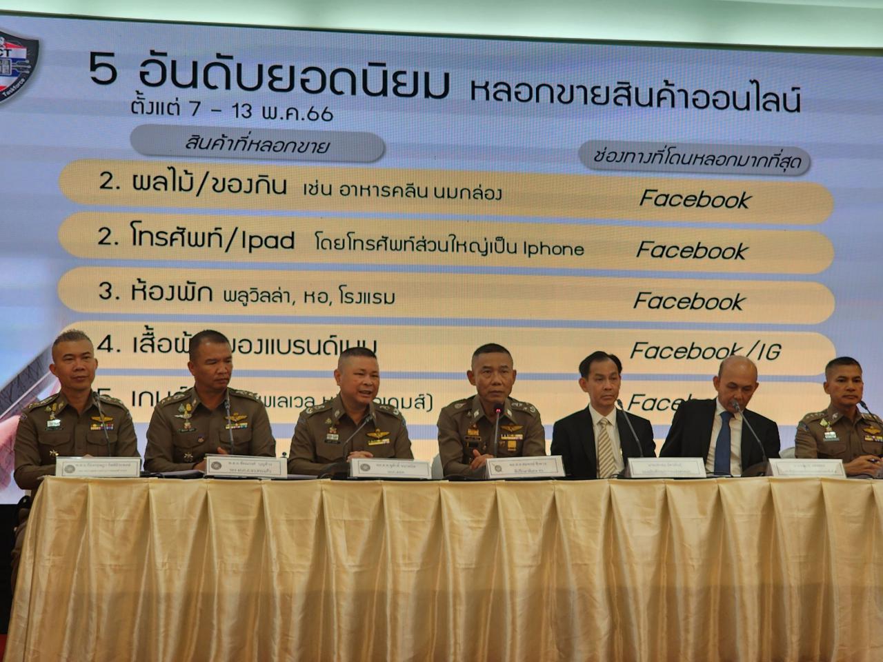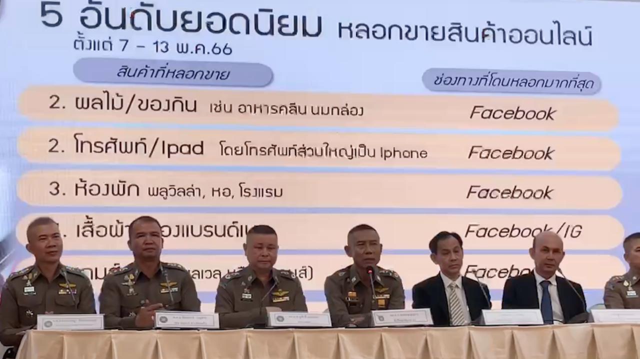 พล.ต.อ.สมพงษ์ กล่าวว่า ในรอบสัปดาห์ที่ผ่านมา ระหว่างวันที่ 7-13 พ.ค. มีสถิติการรับแจ้งความคดีออนไลน์มากที่สุดยังเป็นคดีเดิมๆ 5 อันดับ ได้แก่ อันดับ 1. คดีหลอกลวงซื้อขายสินค้าหรือบริการ 2. คดีหลอกลวงให้โอนเงินเพื่อทำงานหารายได้พิเศษ 3. คดีหลอกลวงให้กู้เงิน 4. คดีข่มขู่ทางโทรศัพท์ให้เกิดความกลัวแล้วหลอกให้โอนเงิน และ 5. คดีหลอกลวงให้ลงทุนผ่านระบบคอมพิวเตอร์ สำหรับคดีออนไลน์ที่มิจฉาชีพนำมาหลอกลวงในช่วงนี้ คือ หลอกลวงให้โอนเงินทำใบขับขี่โดยไม่ต้องไปสอบที่ขนส่ง และหลอกให้ดาวน์โหลดแอปพลิเคชันปลอม Wish Shop ซึ่งถือเป็นเรื่องจำเป็นเร่งด่วนต้องเตือนให้ประชาชนได้รับทราบ