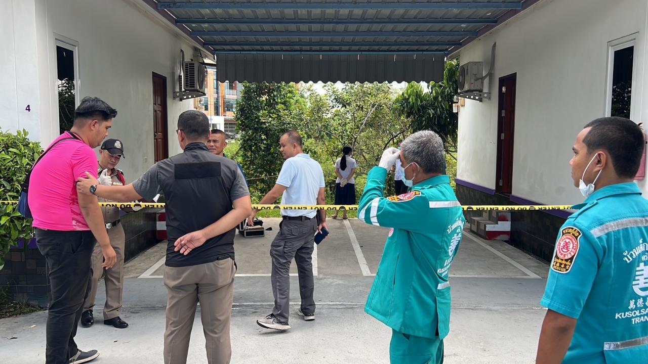 เมื่อเวลา 13.00 น. วันที่ 16 พ.ค. 66 พ.ต.ท พิเชษฐ์ ซูซัน สว.สอบสวน สภ.เมืองตรัง ได้รับแจ้งเหตุพบศพชายเสียชีวิตภายในรีสอร์ตแห่งหนึ่ง ต.ทับเที่ยง อ.เมือง หลังรับแจ้งจึงรุดตรวตสอบพร้อม พ.ต.อ.อภิชัย กรอบเพชร รอง ผบก.ภ.จว.ตรัง พ.ต.อ.รัฐกร ภักดีวานิช ผกก.สส.ภ.จว.ตรัง พ.ต.อ.สานิตย์ พลเพชร ผกก.สภ.เมืองตรัง พ.ต.ต.สวรรยา เอียดตรง สว.กก.6 บก.ป ตำรวจ กำลังชุดสืบสวน สภ.เมืองตรัง สืบสวน ภ.จว.ตรัง ตำรวจท่องเที่ยว แพทย์เวร รพ.ศูนย์ตรัง และเจ้าหน้าที่หน่วยกู้ภัยมูลนิธิกุศลสถานตรัง