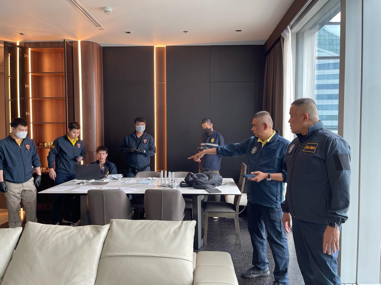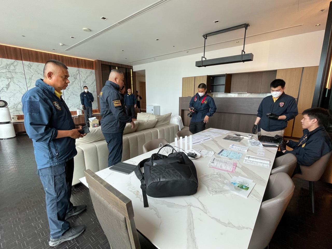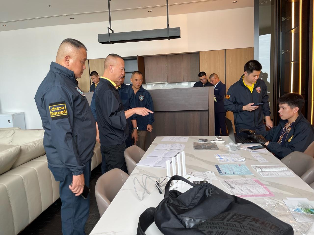 โดยจุดสำคัญคือการเข้าตรวจค้นห้องชุดชั้น 37 มูลค่า 128 ล้านบาท ภายในคอนโดฯ หรูสูง 70 ชั้น ย่านสาทร กทม. ซึ่งห้องดังกล่าวมีการตกแต่งบิลท์อินสุดหรู โดยพบว่าห้องดังกล่าวเป็นของ นายอาบิน เย่ สามีของนางเคอ ยี เย่ หรือ คี ยี เย่ อายุ 25 ปี ผู้ต้องหาชาวจีนตามหมายจับศาลอาญาที่ 1665-1666/2566 ลงวันที่ 26 พ.ค. ในความผิดฐานร่วมกันฉ้อโกงประชาชนและร่วมกันฟอกเงิน ที่ถูกจับกุมไว้ก่อนหน้านี้ ที่หมู่บ้านย่านศรีนครินทร์ กทม.