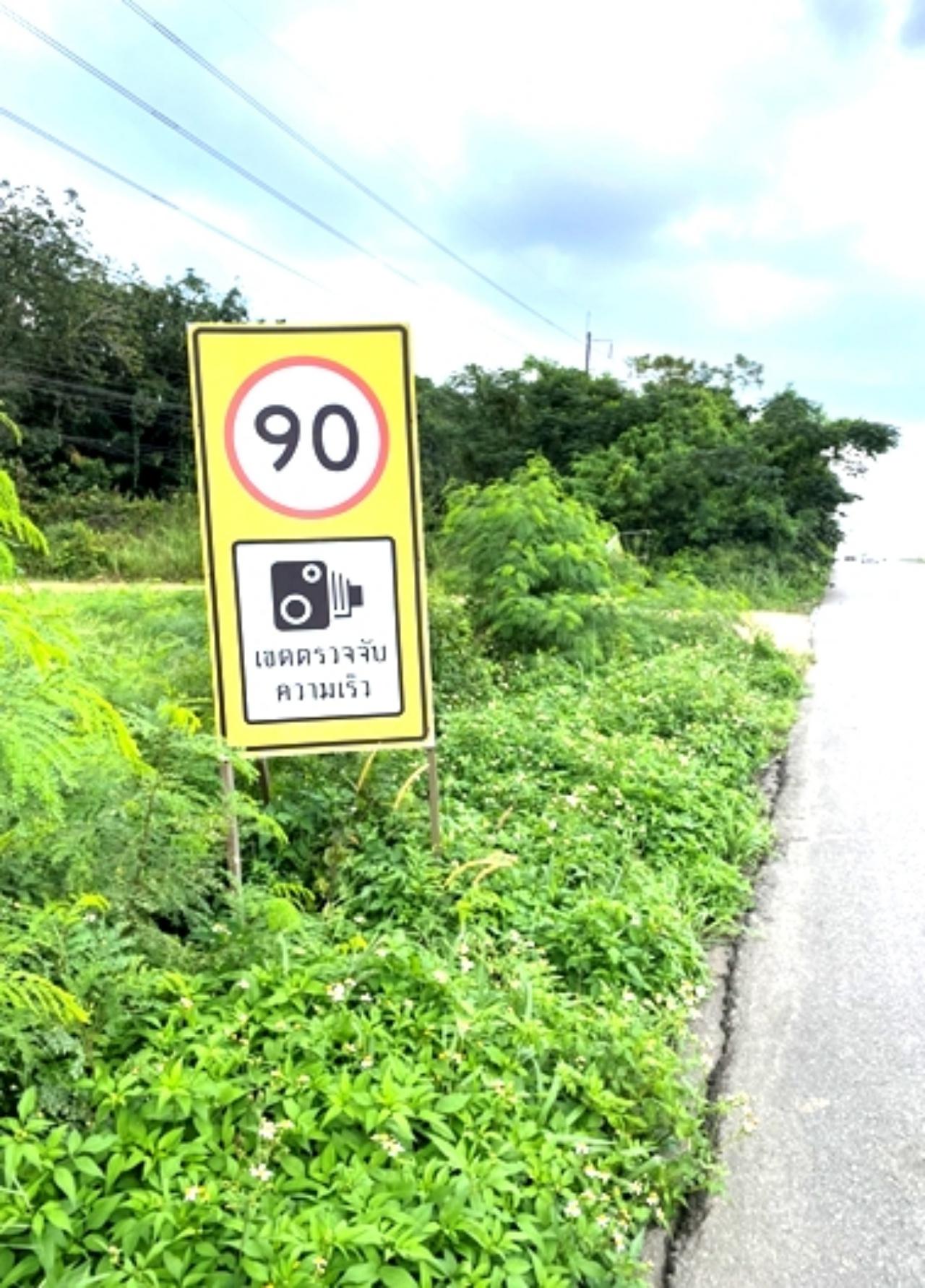 จากภาพ ป้ายจำกัดความเร็วรถ ตั้งแจ้งเตือนก่อนถึงจุดตรวจจับความเร็ว 2 กิโลเมตร