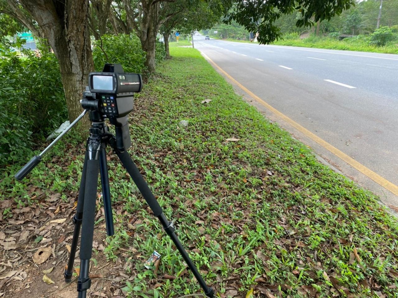 จากภาพ ป้ายลดความเร็วรถ ตั้งแจ้งเตือนก่อนถึงจุดตรวจจับความเร็ว 1 กิโลเมตร