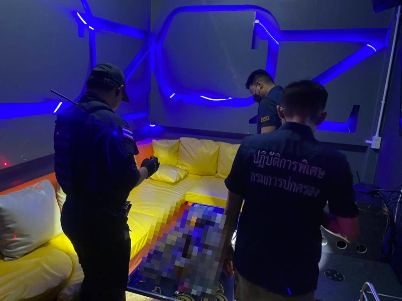 โดยพบร่องรอยการเสพยาเสพติดภายในร้าน จึงได้ทำการตรวจปัสสาวะของนักเที่ยวและพนักงานร้าน พบสารเสพติด ทั้งหมด 9 คน เป็นนักเที่ยว 5 คน เป็นพนักงานร้าน 4 คน พบนักเที่ยวอายุ ต่ำกว่า 20 ปี จำนวนสองคน มีอายุ 17 ปี และ 18 ปี ตามลำดับ และทำการช่วยเหลือบุคคลซึ่งอาจเป็นผู้เสียหายจากการค้ามนุษย์ ซึ่งเป็นพนักงานหญิงของทางร้าน ที่มีอายุต่ำกว่า 18 ปี จำนวน 6 คน พบว่ามีอายุต่ำสุดเพียง 15 ปี
