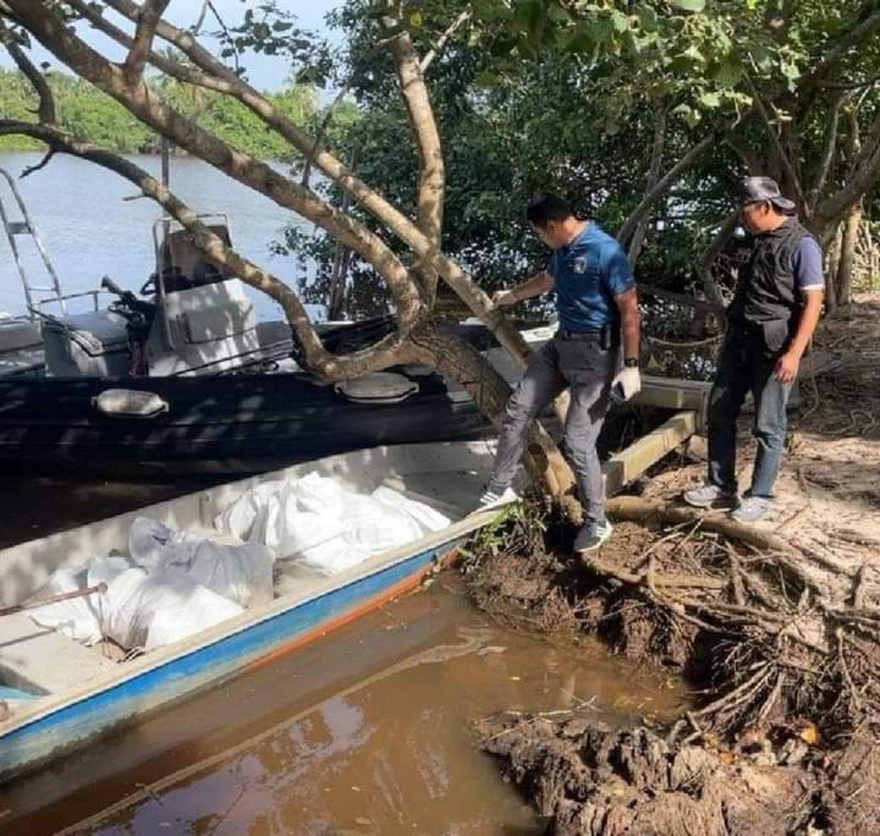 เมื่อถึงบริเวณท่าน้ำบ้านราญอ ม.8 ต.เกาะสะท้อน อ.ตากใบ พบชายฉกรรจ์ จำนวน 4 คน กำลังขนสิ่งของจากรถยนต์เก๋งไปลงเรืออยู่บริเวณริมตลิ่ง ซึ่งมีกิ่งไม้ใหญ่ปกคลุมไว้ เมื่อกลุ่มชายฉกรรจ์เห็นเจ้าหน้าที่ตำรวจ จึงทิ้งเรือและรถยนต์วิ่งหลบหนีไปอย่างรวดเร็ว เจ้าหน้าที่จึงได้หยุดเรือพร้อมเข้าตรวจสอบ พบยาไอซ์ที่บรรจุในถุงชา จำนวน 102 ก้อน ซุกซ่อนอยู่ในเรือ และเมื่อเจ้าหน้าที่ตรวจสอบรถยนต์เก๋ง ยังพบยาไอซ์อีก 2 ก้อนซุกซ่อนอยู่ในช่องลับที่ดัดแปลงช่องเก็บล้ออะไหล่ช่วงกระโปรงหลังเจ้าหน้าที่จึงได้ตรวจยึดของกลางทั้งหมดไว้มาตรวจสอบ