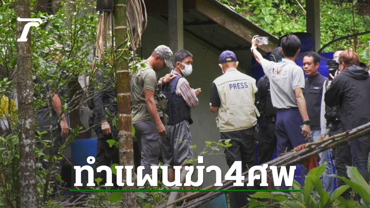 คุมคนร้ายฆ่าโหด 4 ศพทำแผน รับตั้งใจก่อเหตุ เพราะคับแค้นใจเตรียมการทุกขั้นตอน อ้าง 3 พม่าชอบขโมยขี้ยางในสวน สวนคนไทยใช้มีดกรีดหน้ายางจนหน้ายางเสียหาย ก่อนหิ้วตรวจฉี่พบสีม่วง รับเสพติดกัญชาอย่างหนัก ตำรวจแจ้ง 5 ข้อหาหนัก