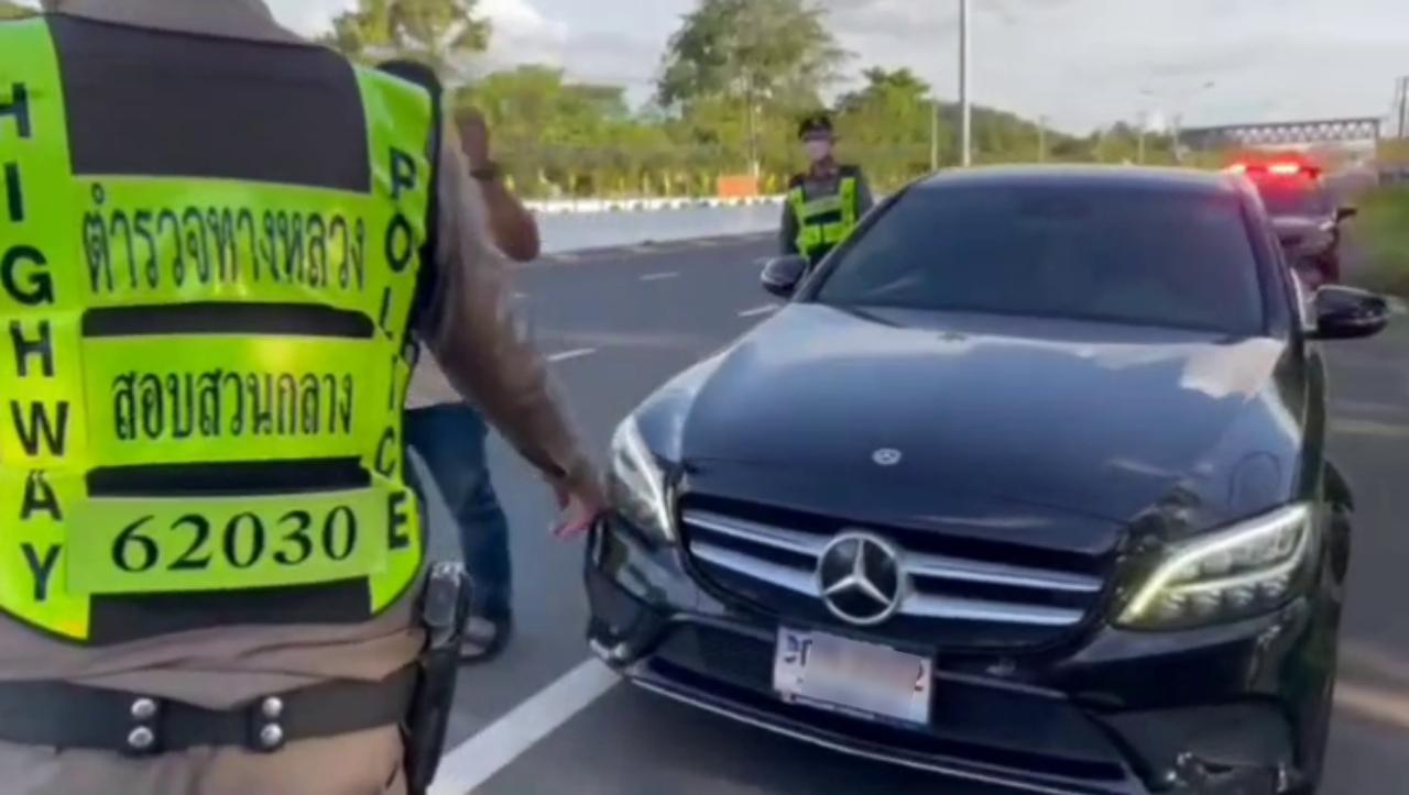 ตำรวจทางหลวงบุรีรัมย์ สกัดจับหนุ่มขับเบนซ์หรู หลังมีคนร้องเรียนได้ใบสั่งขับรถเร็วเป็นประจำ ทั้งที่ไม่เคยขับไปจังหวัดบุรีรัมย์ ตรวจสอบพบติดสติกเกอร์ทับตัวอักษรด้านหน้า อ้างฝีมือลูกนำมาติดเล่น เจ้าหน้าที่ไม่ปักใจเชื่อ