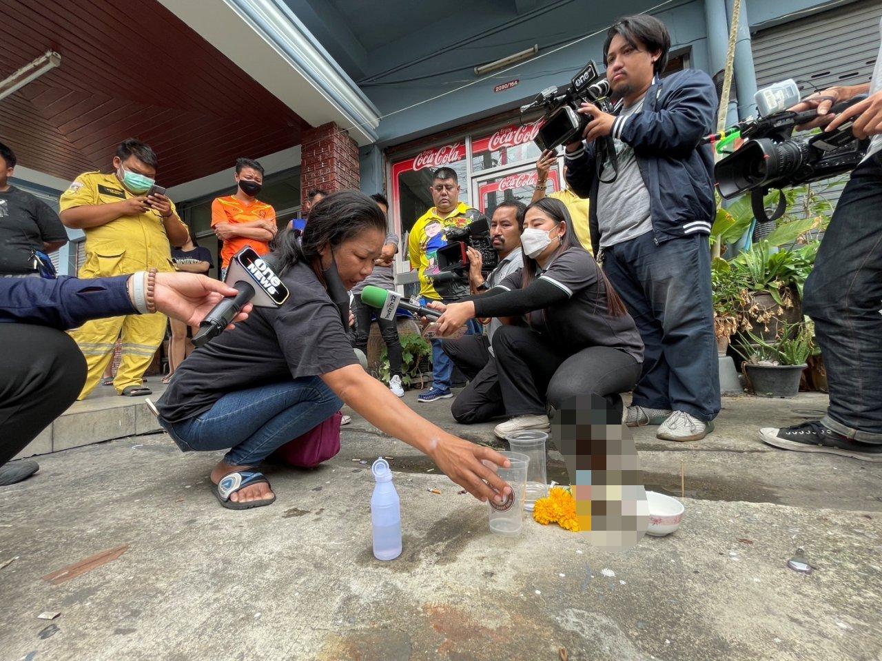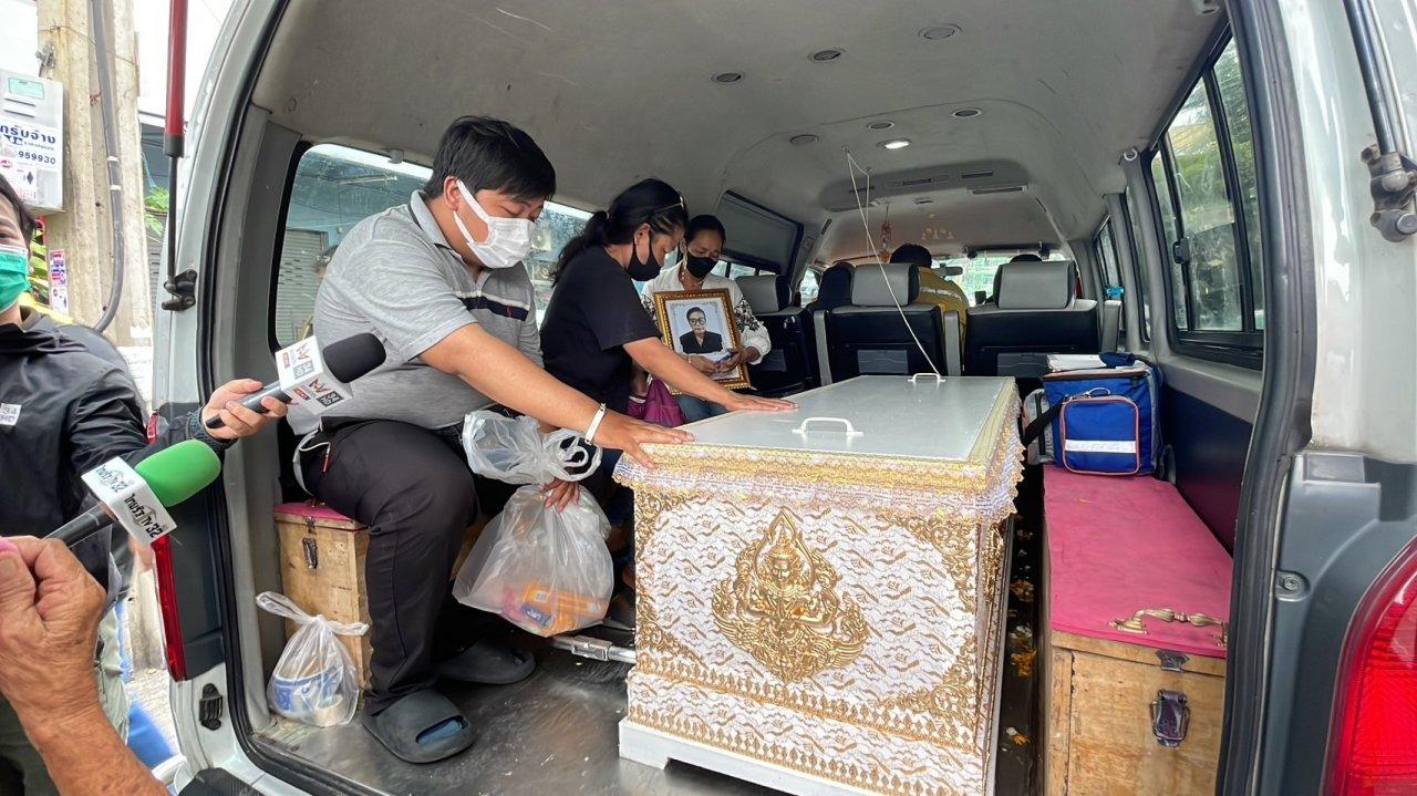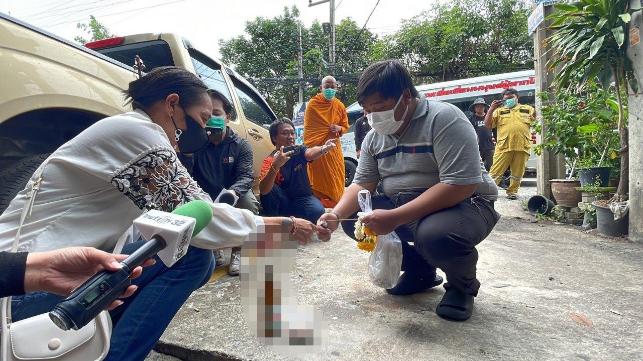 ทั้งนี้ ผู้นำประกอบพิธีบอกกับทางญาติว่า ผู้ตายยังติดอยู่กับเพื่อนที่นั่งดื่มเหล้ากันครั้งสุดท้ายก่อนจะเสียชีวิต จากนั้นคนที่พักอยู่ในคอนโดฯ จึงขึ้นไปตาม นางสาวกัญญา วิวาสุข เพื่อนผู้ตาย ให้มาจุดธูปบอกล่าว และรินเหล้าให้กับวิญญาณของผู้ตาย ก่อนที่ นางกัญญา จะร่วมเดินทางไปด้วย เพื่อนำศพไปตั้งบำเพ็ญกุศลตามศาสนา ที่ศาลา 4 วัดด่านสำโรง ต.สำโรงเหนือ อ.เมือง จ.สมุทรปราการ ต่อไป
