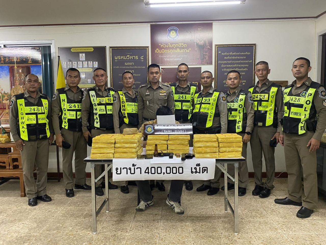 ตรวจพบ นายธนวัฒน์ เป็นผู้ขับ ตรวจค้นในรถเก๋งโตโยต้า พบกระสอบสีขาว 2 กระสอบ ภายในบรรจุยาบ้าสัญลักษณ์ Y-1 กระสอบละ 2 แสนเม็ด รวมยาบ้าทั้งหมด 4 แสนเม็ด จึงได้นำตัว นายธนวัฒน์ ไปตรวจปัสสาวะหาสารเสพติดที่โรงพยาบาล พบปัสสาวะเป็นสีม่วง และยึดของกลางทั้งหมดไว้ก่อนควบคุมตัว