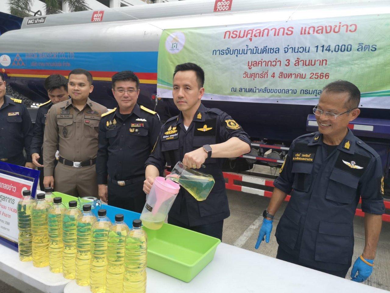 กรมศุลกากรจับน้ำมันดีเซลกว่า 1 แสนลิตร มูลค่า 3 ล้านกว่าบาท หลังสกัดจับรถบรรทุกน้ำมันได้ เร่งขยายผลหาผู้อยู่เบื้องหลัง หลังคดีสิ้นสุดจะประมูลน้ำมันนำรายได้เข้ารัฐ รวมทั้งแถลงการยึดเฮโรอีนซุกกล่องพัสดุเตรียมส่งออกไปฮ่องกง มูลค่า 10 ล้านบาท