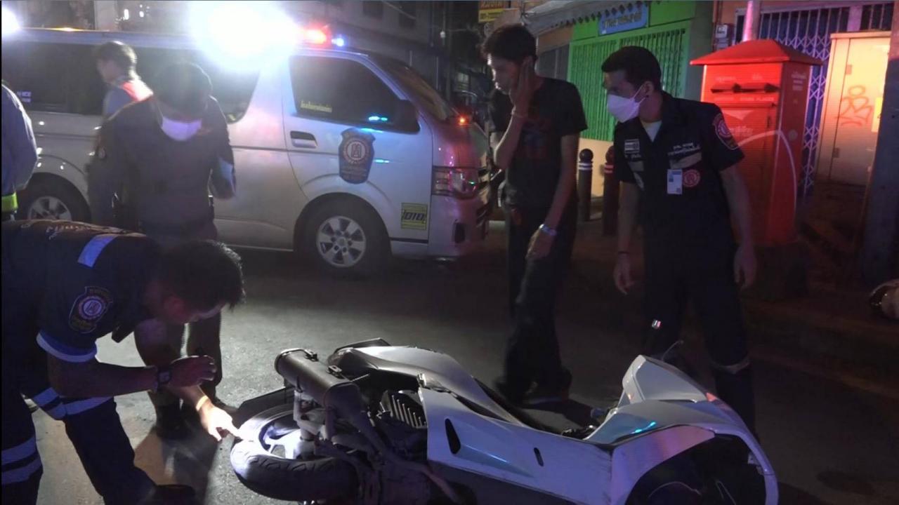 ที่เกิดเหตุกลางถนน 4 เลน เลนที่ 2 เจ้าหน้าที่กู้ชีพเร่งปั๊มหัวใจให้กับนายตี๋ อายุ 14 ปี สภาพนอนหงายหายใจรวยริน มีบาดแผลฉกรรจ์ถูกยิงด้วยอาวุธปืนเข้าที่ศีรษะ มีเลือดไหลเปื้อนเสื้อยืดคอกลมสีดำ กางเกงยีนส์สีดำขายาว รองเท้าผ้าใบ โดยมีมีดยาวประมาณ 15 นิ้ว ปลายแหลมเหน็บเอวไว้กับกางเกง ใกล้กันยังพบนายเอ อายุ 14 ปี ถูกยิงเข้าที่ก้นขวาและขาขวา กู้ชีพนำตัวทั้งสองรายส่งรพ.สมเด็จพระปิ่นเกล้า กรมแพทย์ทหารเรือ รักษาตัวทันที โดยทั้งคู่ไม่มีเอกสารใดๆ ติดตัว ห่างกันเล็กน้อยพบจยย.ยี่ห้อฮอนด้า รุ่นพีซีเอ็กซ์ สีขาว ทะเบียน 4ขส4179 กรุงเทพมหานคร ล้มอยู่ตะแคงซ้ายตรวจสอบมีร่องรอยถูกกระสุนปืน 4 นัด