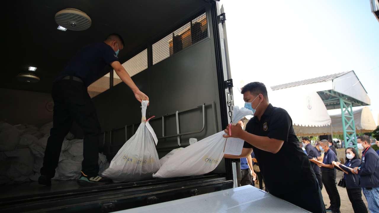 โดยเมื่อวันที่ 18 ส.ค. ที่ผ่านมา คณะทำงานทำลายยาเสพติดของสำนักงาน ป.ป.ส. (ด้านตรวจรับ) ตรวจสอบปริมาณน้ำหนักยาเสพติดของกลางตามบัญชี และพิสูจน์เบื้องต้นด้วยวิธี Color test โดยนักวิทยาศาสตร์จากกรมวิทยาศาสตร์การแพทย์ จากนั้นส่งมอบยาเสพติดให้คณะทำงานทำลายยาเสพติดของกลางของสำนักงาน ป.ป.ส. ด้านขนย้าย รักษาความปลอดภัย และทำลาย ขนย้ายมายังนิคมอุตสาหกรรมบางปะอิน เป็นยาเสพติด จำนวน 2,191.61 กก. จาก 7 คดี รวม 187 กระสอบ แบ่งเป็น ยาบ้าประมาณ 20 ล้านเม็ด หรือ 1,875.34 กก. ไอซ์ 9.72 กก. เฮโรอีน 7.20 กก. และคีตามีน 299.55 กก. โดยภายหลังจากเสร็จสิ้นกระบวนการเผาทำลายยาเสพติดของกลางตามกำหนดการ ในวันที่ 19 สิงหาคม เรียบร้อยแล้ว ในวันที่ 20 สิงหาคม จะมีคณะทำงานทำลายยาเสพติดของกลางด้านขนย้าย รักษาความปลอดภัย และทำลาย มาร่วมกันตรวจสอบความเรียบร้อยของการเผาทำลายยาเสพติดของกลางอีกครั้งตลอดจนการเก็บขี้เถ้าตรวจพิสูจน์ เพื่อเป็นการยืนยันการเสร็จสิ้นกระบวนการเผาทำลายยาเสพติดของกลาง