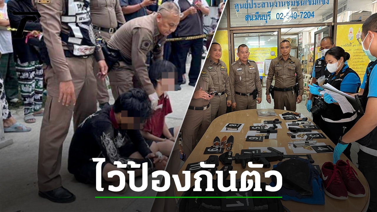 ตำรวจ สน.มีนบุรี ตามตะครุบ 2 หนุ่ม นักศึกษาเทคนิคชื่อดังย่านมีนบุรี ยึดปืนแบลงก์กัน 7 กระบอก มีด 3 เล่ม กระสุนเพียบ สอบสวนทราบว่าซื้อมาจากแพลตฟอร์มช็อปปิ้งออนไลน์ ก่อนนำมาดัดแปลง ใช้พกติดตัวป้องกันคู่อริ