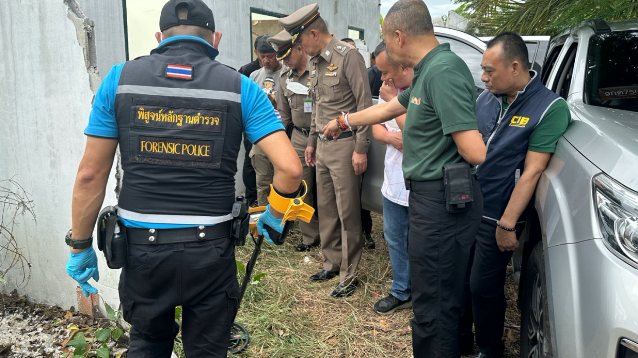 "รองต่อ" ตรวจดูที่เกิดเหตุ ชุดสืบสวนกองบัญชาการตำรวจสอบสวนกลาง วิสามัญ นายธนัญชัย หรือหน่อง หมั่นมาก ในซอยโรงเจร้างหลังวัดพระแท่นดงรัง หลังไม่ยอมมอบตัว ยิงใส่ตำรวจเพื่อเปิดทางหนี