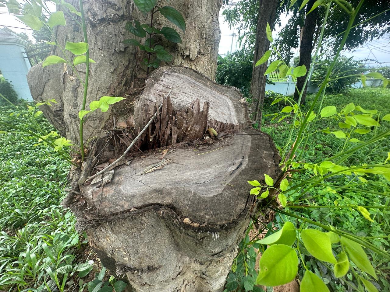โดยต้นพะยูงที่ถูกตัด อายุเกือบ 100 ปี มี 2 นาง (กิ่ง) ถูกคนร้ายตัดไป 1 นาง ใกล้ต้นที่ถูกตัดไปยังพบต้นพะยูงขนาดใหญ่ แผ่กิ่งก้านใบร่มครึ้ม คาดว่าอายุมากกว่า 100 ปี โดยมีการใช้ลวดหนามล้อมโคนต้น อีกแห่งที่ด้านหลังโรงเรียน พบต้นพะยูงยืนต้นตายโดยไม่ทราบสาเหตุ ทั้งนี้ ครูยังให้ข้อมูลกับเจ้าหน้าที่ข่าว กอ.รมน.จ.กาฬสินธุ์ ว่า หลังเกิดเหตุคนร้ายลักลอบตัดต้นพะยูงในโรงเรียนดังกล่าว ได้มีเจ้าหน้าที่ธนารักษ์กาฬสินธุ์ อ้างชื่อ “สันติ” เข้ามาแนะนำให้ทางโรงเรียน และคณะกรรมการสถานศึกษา ทำเรื่องขออนุญาตผู้อำนวยการ สพป.กาฬสินธุ์ เขต 2 ตัดไม้พะยูงที่เหลืออยู่ในบริเวณโรงเรียนขาย เพื่อเอาเงินเข้าหลวงอีกด้วย