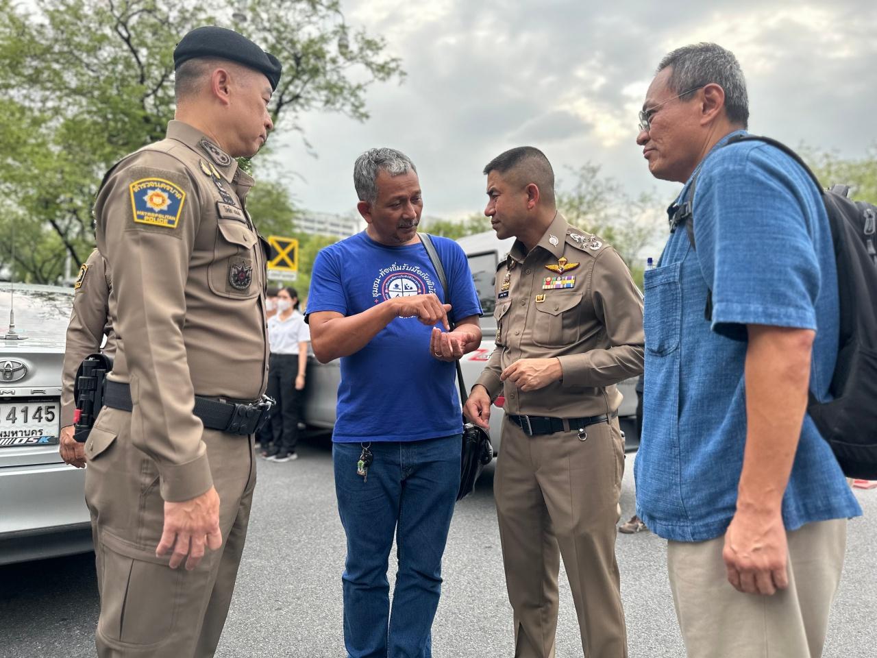 “ทุกคนผมขอหารือพวกเราทุกคนว่าจากเดิมที่ขอชุมนุมในพื้นที่หน้าอาคารยูเอ็น แต่เมื่อเลื่อนมาชุมนุมที่หน้าทำเนียบฯ ตามกฎหมายจะผิดเงื่อนไขตาม พ.ร.บ.ชุมนุมสาธารณะ ดังนั้น จึงอยากให้ทุกคนเคลื่อนย้ายกลับไปที่หน้ายูเอ็น เพราะไม่อยากให้เมื่อทุกคนมาชุมนุมแล้วจะต้องมีคดีอะไรติดตัวไปทั้งสิ้น อยากให้มาแล้วได้ไปครบตามข้อเรียกร้อง ผมเป็นคนหนึ่งที่พวกท่านจะไว้วางใจได้ จากที่เราคุยกันมาในอดีต และเราต้องไม่ทำให้ผู้กำกับ สน. พื้นที่เขาต้องอึดอัด จึงต้องขอพี่น้องทุกคนว่า ขอให้เชื่อผม โดยเคลื่อนย้ายกลับไปชุมนุมที่หน้ายูเอ็น และยืนยันว่าภาครัฐกำลังหารือถึงข้อเรียกร้องทั้ง 9 ด้านกันอยู่