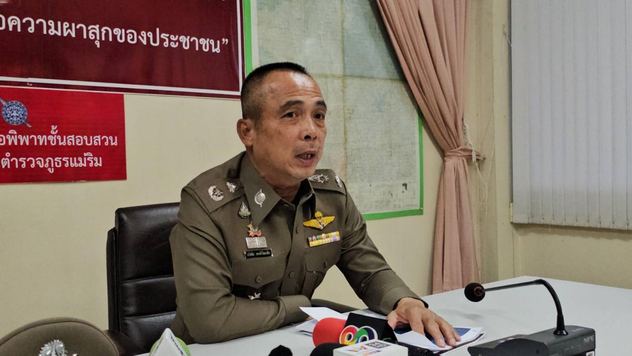 เมื่อเวลา 16.30 น. วันที่ 15 ตุลาคม 2566 พล.ต.ต.ธวัชชัย พงษ์วิวัฒน์ชัย ผบก.ภ.จว.เชียงใหม่ เดินทางมาสรุปประเด็นคดี นางยุพิณ พงษ์จำรัส อายุ 63 ปี ข้าราชการเกษียณที่เสียชีวิต ถูกเผาสภาพเกรียมทั้งตัวข้างกำแพงหลังบ้านพักของตัวเอง ภายในหมู่บ้านขอนตาล หมู่ 3 ต.ริมใต้ อ.แม่ริม จ.เชียงใหม่ เพื่อนบ้านพบศพเมื่อช่วงบ่ายวานนี้ โดยได้เชิญทางครอบครัวของผู้ตายมาสอบสวนพูดคุยนานกว่า 1 ชั่วโมง ก่อนจะออกมาให้สัมภาษณ์กับสื่อมวลชนในเวลา 18.00 น.