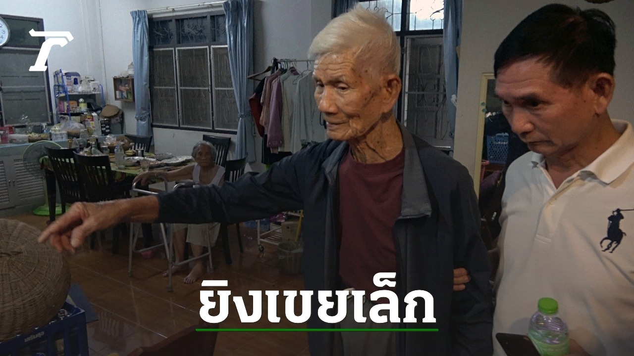 อดีตทหารวัย 92 ปี คว้าปืน 9 มม.ยิงเจาะลำคอลูกเขยคนเล็กจมกองเลือดคาบ้านบาดเจ็บสาหัส อ้างลูกเขยชอบทำตัวกร่างคับบ้าน ล่าสุดอาละวาดโวยวายคว้ามีดสปาร์ตาจะฟันแม่ยายที่นอนติดเตียง เลยต้องยิงเพื่อป้องกันเมีย ตร.สอบแล้วปล่อยกลับบ้าน