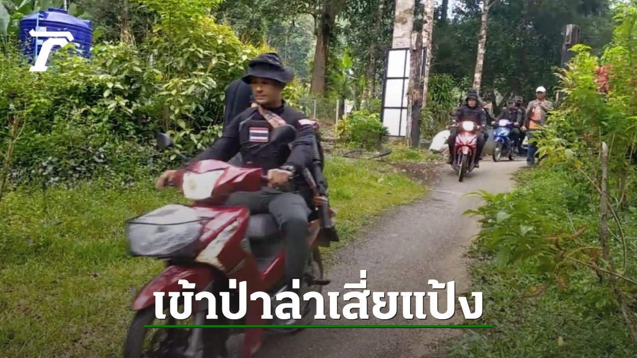 ต่อมาตอนเช้าวันที่ 9 พ.ย. 66 ที่น้ำตกโตนตก อ.ปะเหลียน จ.ตรัง ห่างจากกองอำนวยการร่วมของชุดปฏิบัติการบริเวณน้ำตกโตนเต๊ะไปประมาณ 3 กิโลเมตร เป็นเชิงเขาปากทางที่จะเดินทางขึ้นไปยังชุมชนบ้านตระ อ.ปะเหลียน กำลังเจ้าหน้าที่ตำรวจชุดหนุมานศรีตรัง กก.สส.ภ.จว.ตรัง และกำลังชุดปฏิบัติการพิเศษตำรวจภูธรภาค 9 จำนวนกว่า 10 นาย พร้อมอาวุธครบมือ ได้ใช้รถ จยย.วิบาก เป็นยานพาหนะเดินทางขึ้นไปยังชุมชนบ้านตระ ระยะทางประมาณ 7 กิโลเมตร เพื่อที่จะเดินเท้าต่อไปยังจุดที่มีการปะทะเกิดขึ้นเมื่อวานนี้ เพื่อสนับสนุนเจ้าหน้าที่ ตำรวจแดนไทย 54 และชุดหนุมานตำรวจสอบสวนกลาง ที่ได้ขึ้นไปกดดันล่าตัว เสี่ยแป้ง อยู่ตั้งแต่เย็นเมื่อวานนี้แล้ว