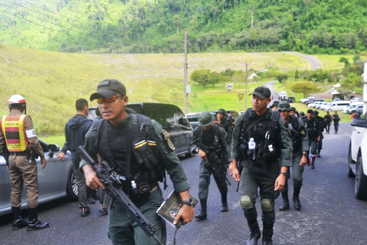 จากนั้นชุดกำลังดังกล่าวได้เดินลงเรือหางยาว จำนวน 3 ลำ เพื่อไปขึ้นฝั่งในพื้นที่ป่าไม้ตรงข้ามกับอ่างเก็บน้ำฯ ก่อนจะลงพื้นที่เดินเท้าเข้าสู่พื้นที่บ้านตระ ในส่วนของ ตร.สภ.ตะโหมด ก็มีการจัดตั้งจุดตรวจจุดสกัดเต็มพื้นที่เช่นกัน