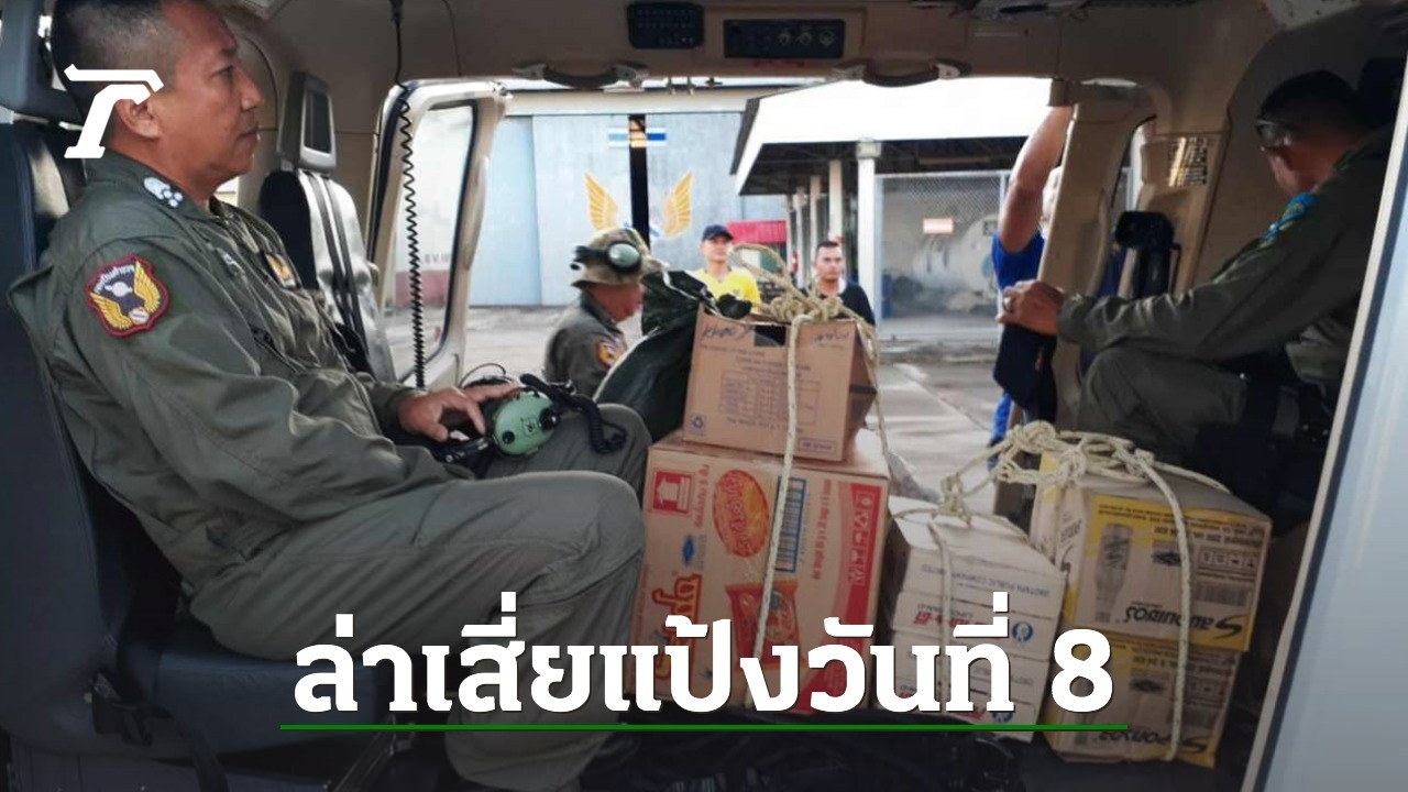 วันที่ 8 ของการไล่ล่า แป้ง นาโหนด บนเทือกเขาบรรทัด มีการปรับแผนการเดินเท้าจากล่างขึ้นบนเขา หลังจาก ฮ.ตรวจจับความร้อนได้ใกล้น้ำตกช่วงประมาณตีสาม ใช้การส่งเสบียงทางอากาศ พบอุปสรรคฝนตกต่อเนื่อง สภาพอากาศปิด ส่วนกลุ่มเงาะป่ามันนิอพยพออกจากป่าใกล้น้ำตกท่าช้างมาอยู่ด้านล่างชั่วคราว เปิดทางให้เจ้าหน้าที่ทำงาน