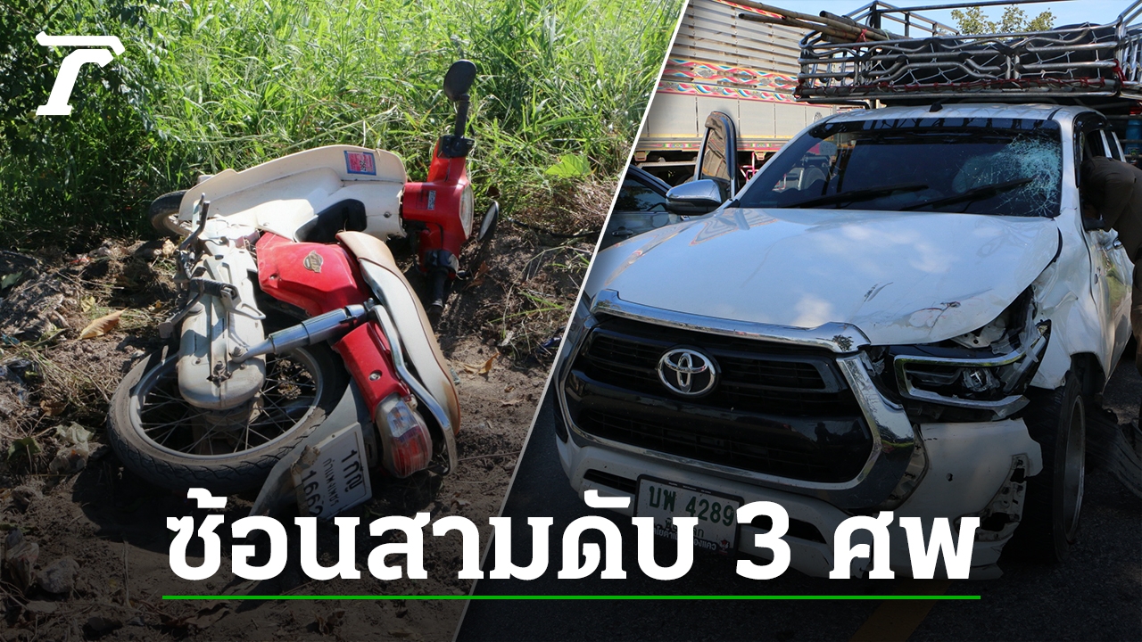 นักเรียนชายชั้น ม.2 เรียนโรงเรียนเดียวกัน ชั้นเดียวกัน 3 คน ขับขี่รถจักรยานยนต์ซ้อน 3 ถูกรถกระบะชนทั้งคนทั้งรถ กระเด็นเสียชีวิตคาที่ 3 ศพ คนขับรถกระบะเป็นชาวเมียนมา อ้างว่า จยย.ตัดหน้า