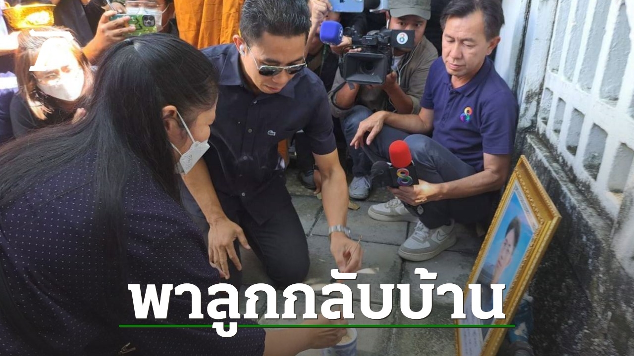 โดยทำพิธีจุดธูปต่อหน้ารูปศพพร้อมโปรยดอกไม้ บอกกล่าวดวงวิญญาณผู้ตายให้ตามกลิ่นควันธูปกลับไปทำพิธีทางศาสนาพร้อมกับญาติ และเพื่อนสนิทที่มาร่วมเชิญดวงวิญญาณ ระหว่างที่ทำพิธี น.ส.นวลนภา แม่ของผู้ตายพูดทั้งน้ำตาว่ากับรูปว่า "กลับบ้านนะลูก แม่มารับลูกแล้ว"