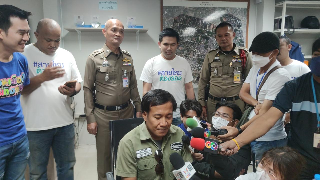 ความคืบหน้าเมื่อเวลา 10.30 น. วันที่ 26 พฤศจิกายน 2566 นายเอกภพ เหลืองประเสริฐ ที่ปรึกษา รมว.มหาดไทย และผู้ก่อตั้งเพจสายไหมต้องรอด พร้อม น.ส.ศรัญญา เงินปาน อายุ 27 ปี น.ส.พัชรกัญภัค ภาณุพงศ์กุลนิต อายุ 31 ปี ผู้เสียหาย ลงพื้นที่จุดเกิดเหตุใต้สถานีรถไฟฟ้าบีทีเอส คปอ. ถนนพหลโยธิน แขวงสนามบิน เขตดอนเมือง กทม. พื้นที่ สน.ดอนเมือง เพื่อชี้จุดเกิดเหตุและจุดที่เป็นที่ตั้งวิน จยย.